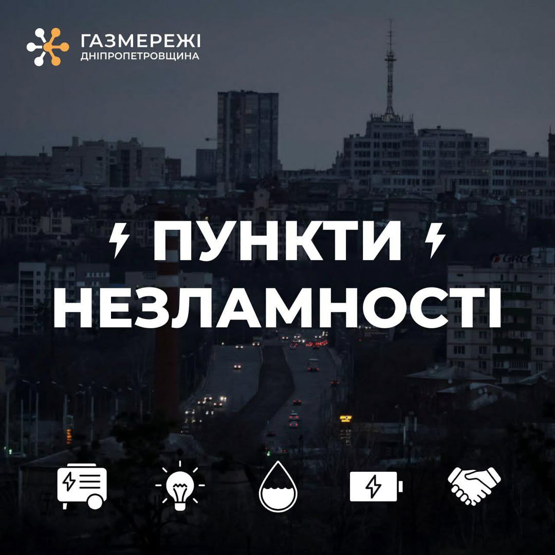 Дніпропетровська філія «Газмережі» розгорнула Пункти незламності на базі управлінь з експлуатації газового господарства та Центрів обслуговування клієнтів у населених пунктах області. Усі пункти забезпечені генераторами та працюють для підтримки мешканців у період блекауту.