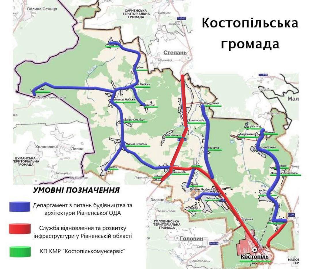 Водночас звертаємо увагу: не всі дороги перебувають у власності Костопільської громади. Частина автошляхів належить до державної та обласної мережі й обслуговується іншими службами.