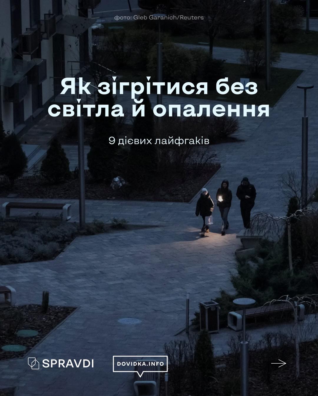 Проєкт Dovidka.info ДУ “Центр стратегічних комунікацій та інформаційної безпеки” підготував серію практичних інструкцій і візуальних матеріалів, які допоможуть пережити блекаут – особливо в зимовий період і під час морозів.