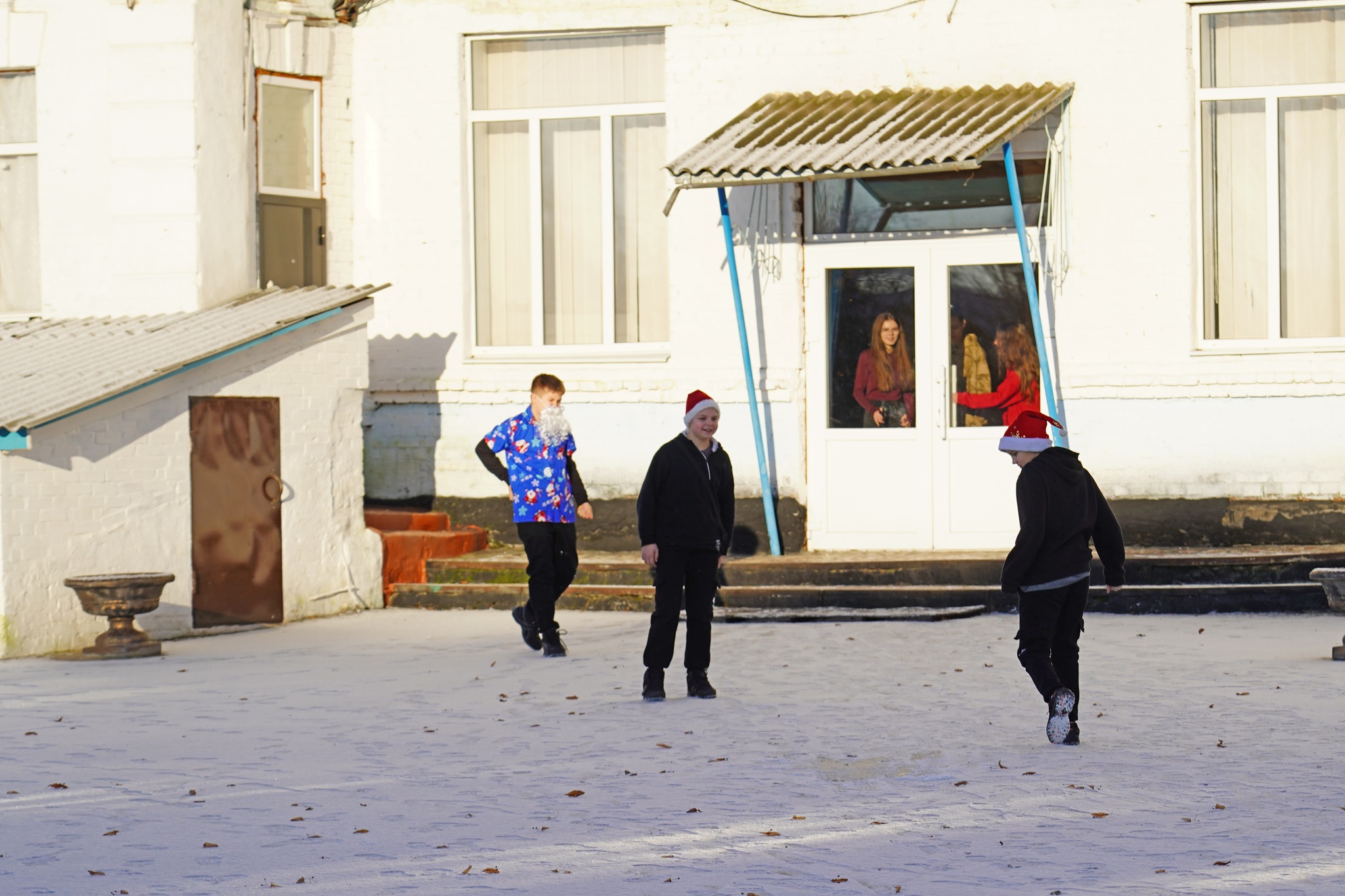 ❄️ На шкільному подвір’ї сьогодні панує зимова атмосфера. Легкий морозець приємно щипає за щоки, але це зовсім не лякає дітей. Навпаки — вони з азартом гасають по свіжому снігу, що весело рипить під ногами.