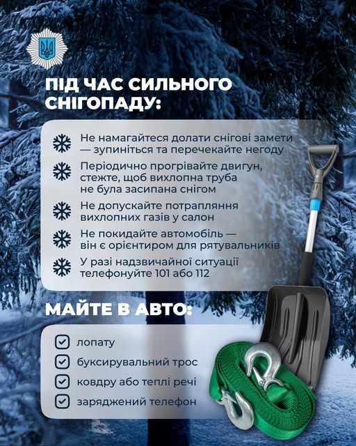 Негода часто приходить раптово. Якщо сильний снігопад застав вас за кермом, головне — не панікувати та дотримуватися правил безпеки 😉