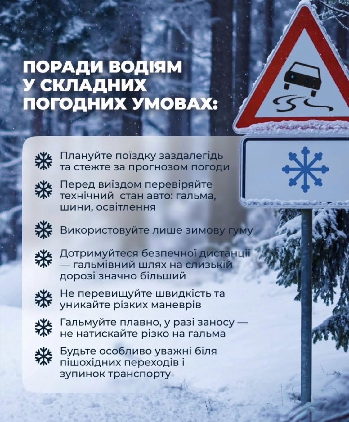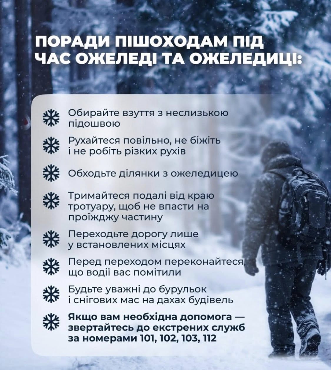 ❄️Негода часто приходить раптово. Як діяти під час сильного снігопаду або ожеледиці – розʼяснення від МВС.