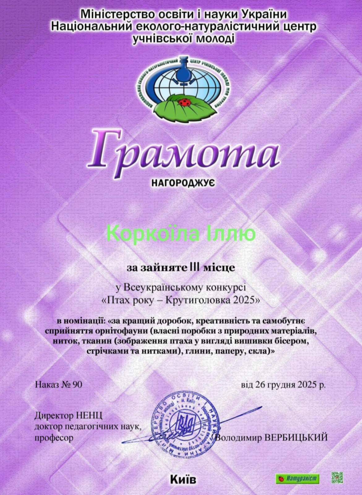 💥Коркоїла Іллю – ІІІ місце ( учитель Мисник О.А.)