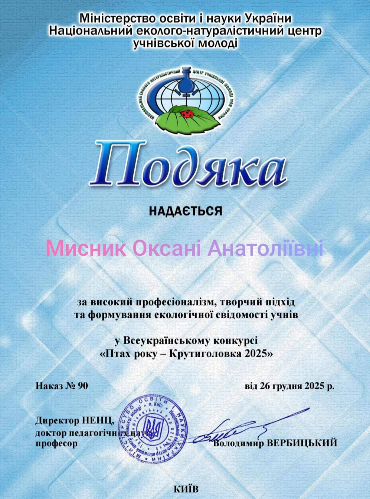 Нещодавно ми вітали переможців обласного етапу Всеукраїнського конкурсу ” Птах року 2025 – Крутиголовка”🐦