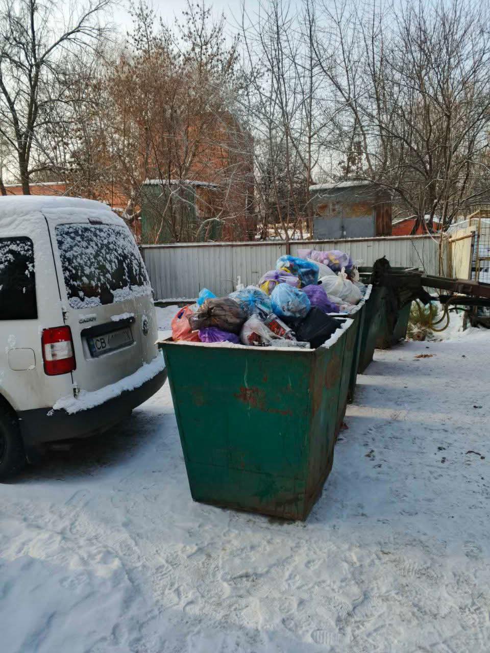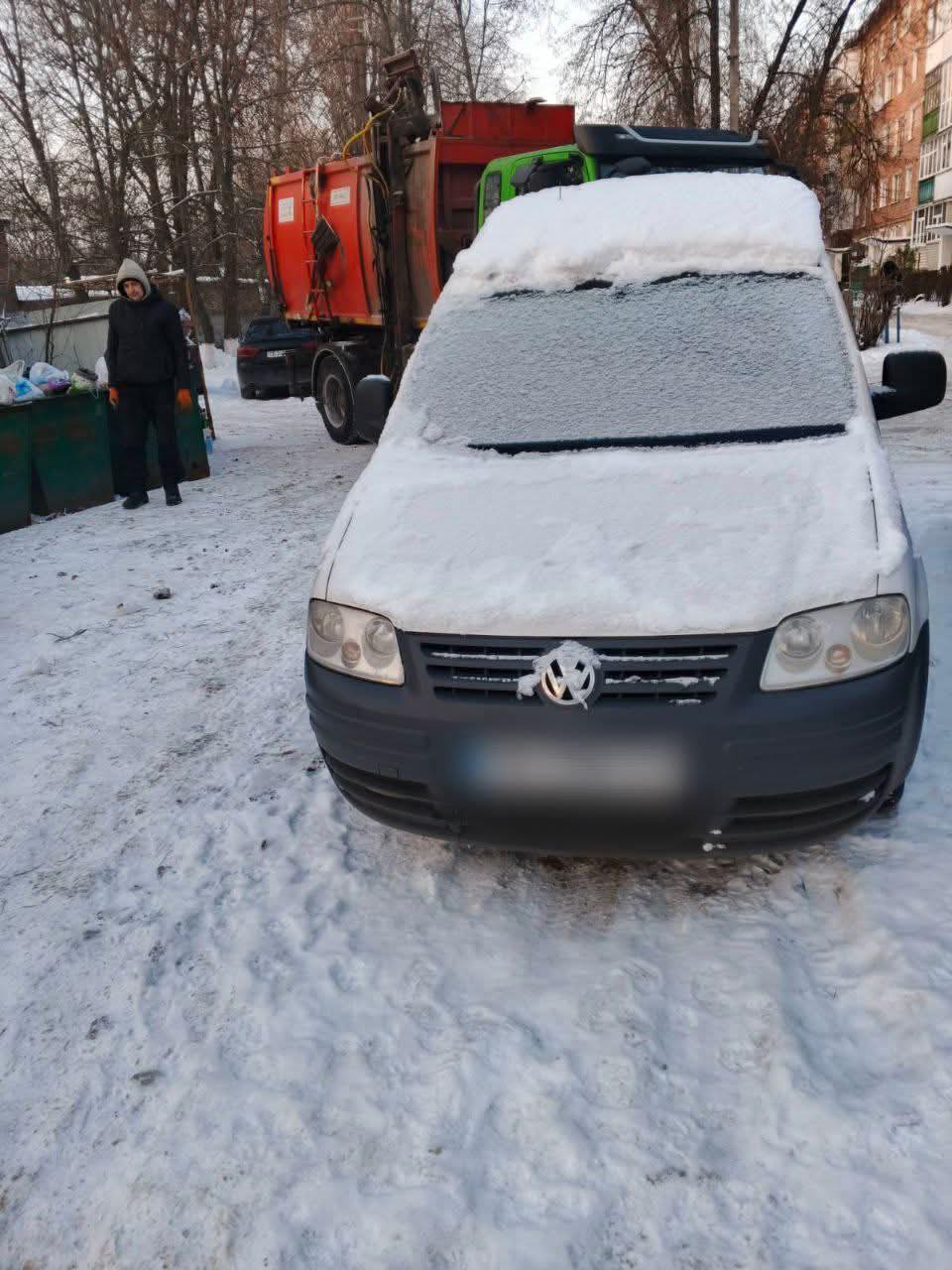 🗑На контейнерному майданчику по вул. Шевченка сміттєвоз КП «ВУКГ» не зміг забрати відходи через авто, припарковане надто близько до контейнерів.