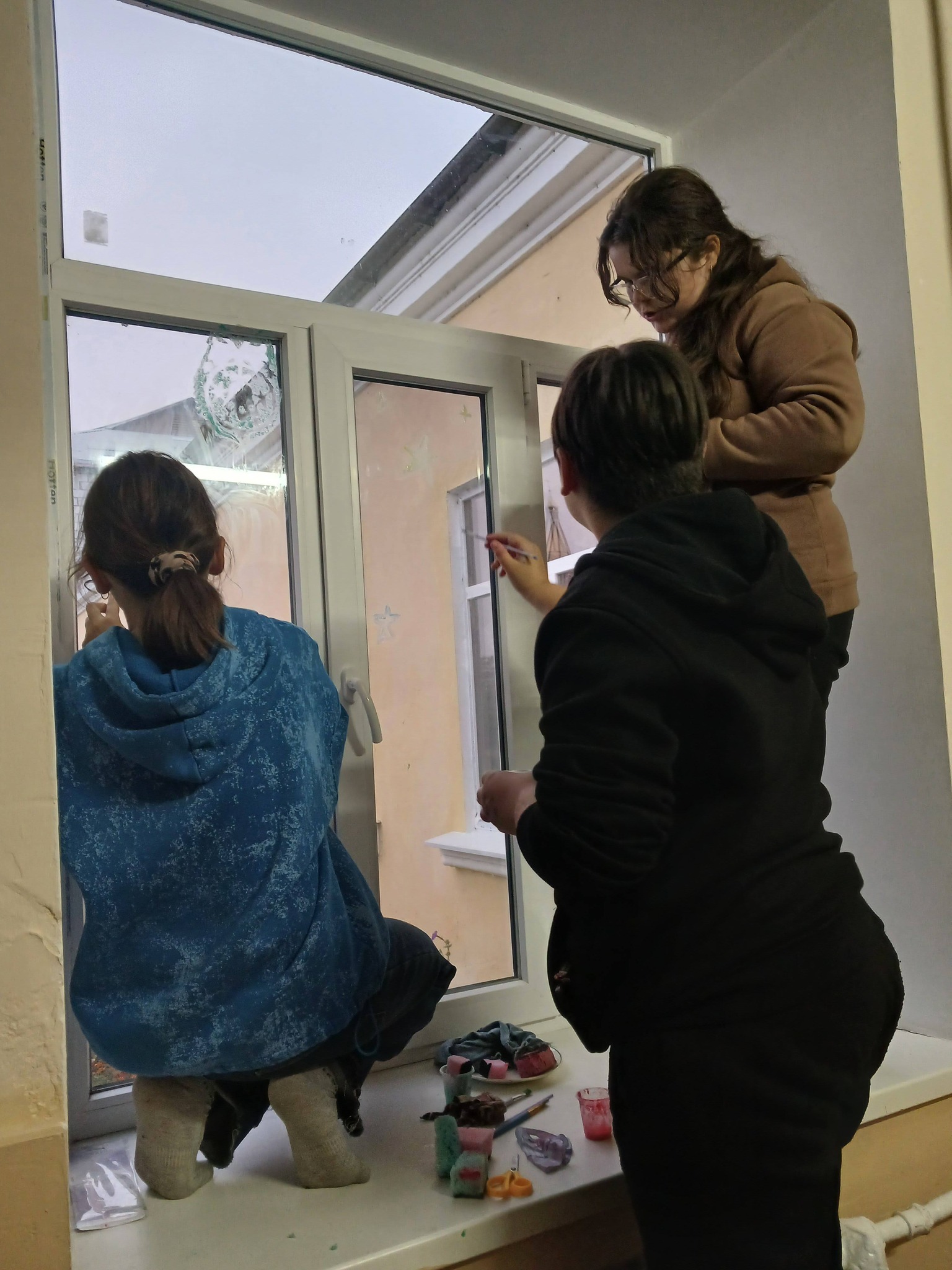 Сніжинки, ялинки, зірки, веселий сніговик, різдвяні дзвіночки та чарівні орнаменти з’явилися на вікнах завдяки старанним дитячим рукам. Кожен малюнок — унікальний, сповнений щирості, добрих мрій і передчуття дива.
