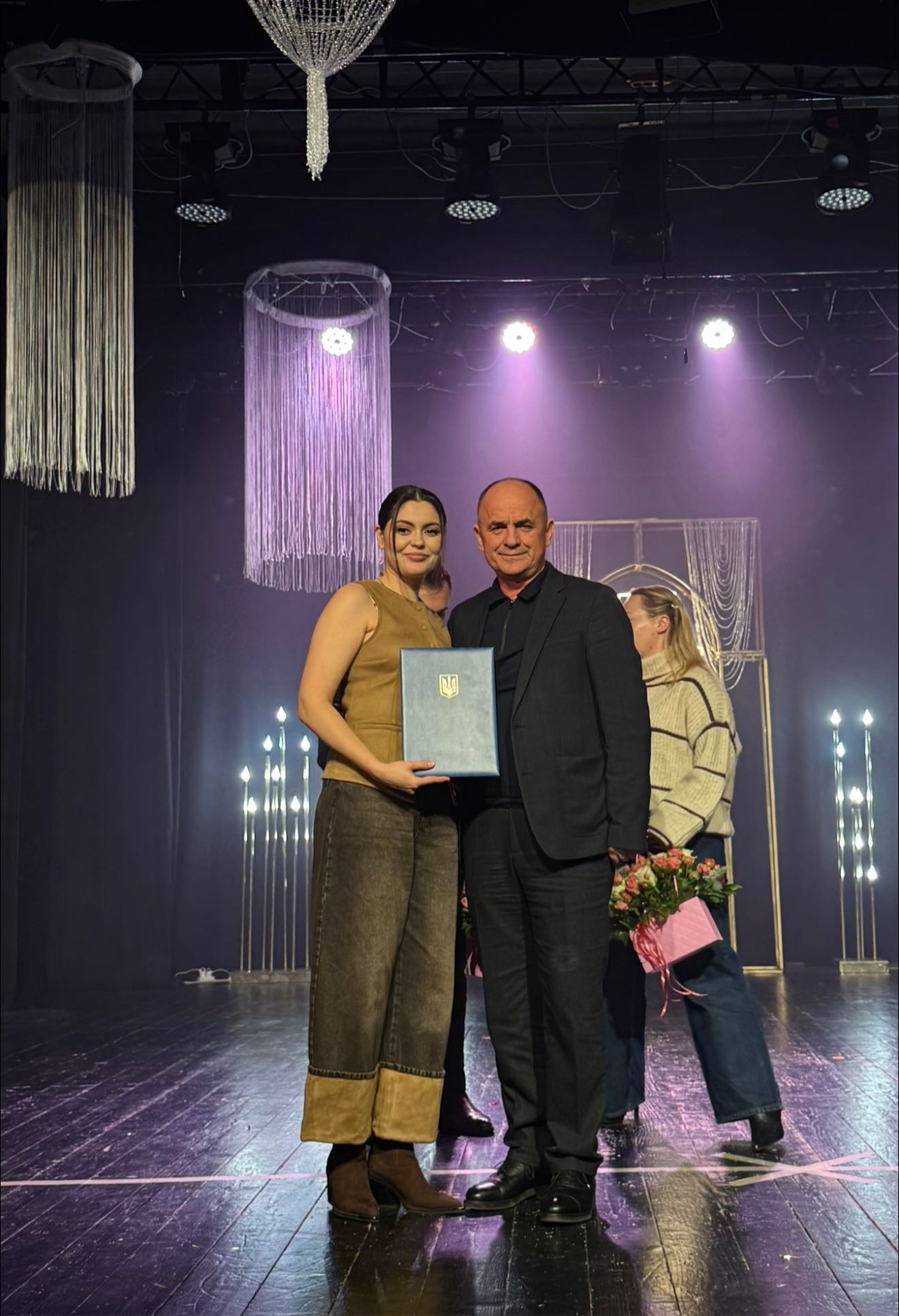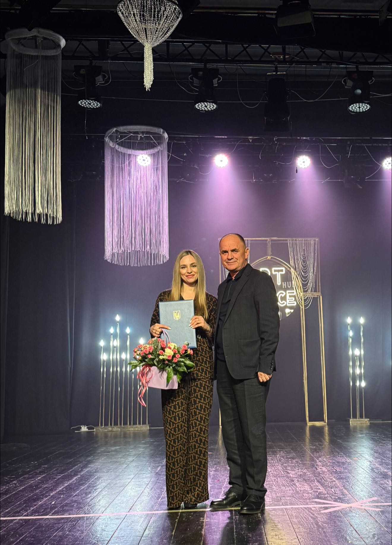 💬Зі словами вітань звернувся до присутніх в.о. Хустського міського голови Василь Губаль. За вагомий внесок у розвиток культури, підтримку традицій вручив грамоти та квіти. «Щира подяка вам за відданість справі, за безмежну любов до танцю, за щоденну копітку працю, терпіння та натхнення. Протягом 5 років тут народжуються і розквітають нові зірки, і це важливо, як ніколи. Пишаємося вами. З прийдешніми святами!», – наголосив Василь Іванович.