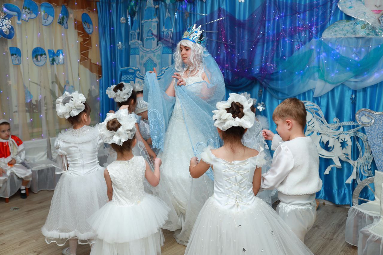 Неймовірні декорації перетворили зал на казкове королівство, де кожен куточок дихав атмосферою зими, а костюми були продумані до найменших дрібниць.