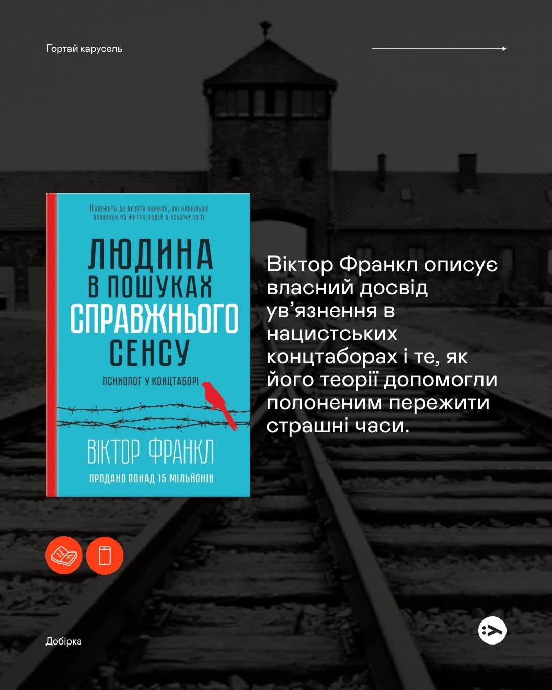 Віктор Франкл «Людина в пошуках справжнього сенсу» – психолог, який пройшов концтабір, розповідає, як зберегти людську гідність у нелюдських умовах.