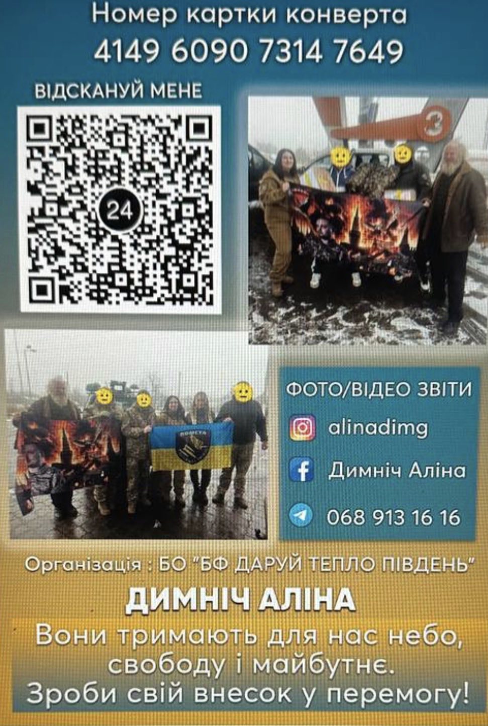 Шановні жителі Девладівської громади! До нас звертається Благодійна організація «Благодійний фонд даруй тепло південь», які організовують збір і доставку гуманітарної допомоги нашим Захисникам і Захисницям під гаслом «Вони тримають для нас небо, свободу і майбутнє. Зроби свій внесок у перемогу!».