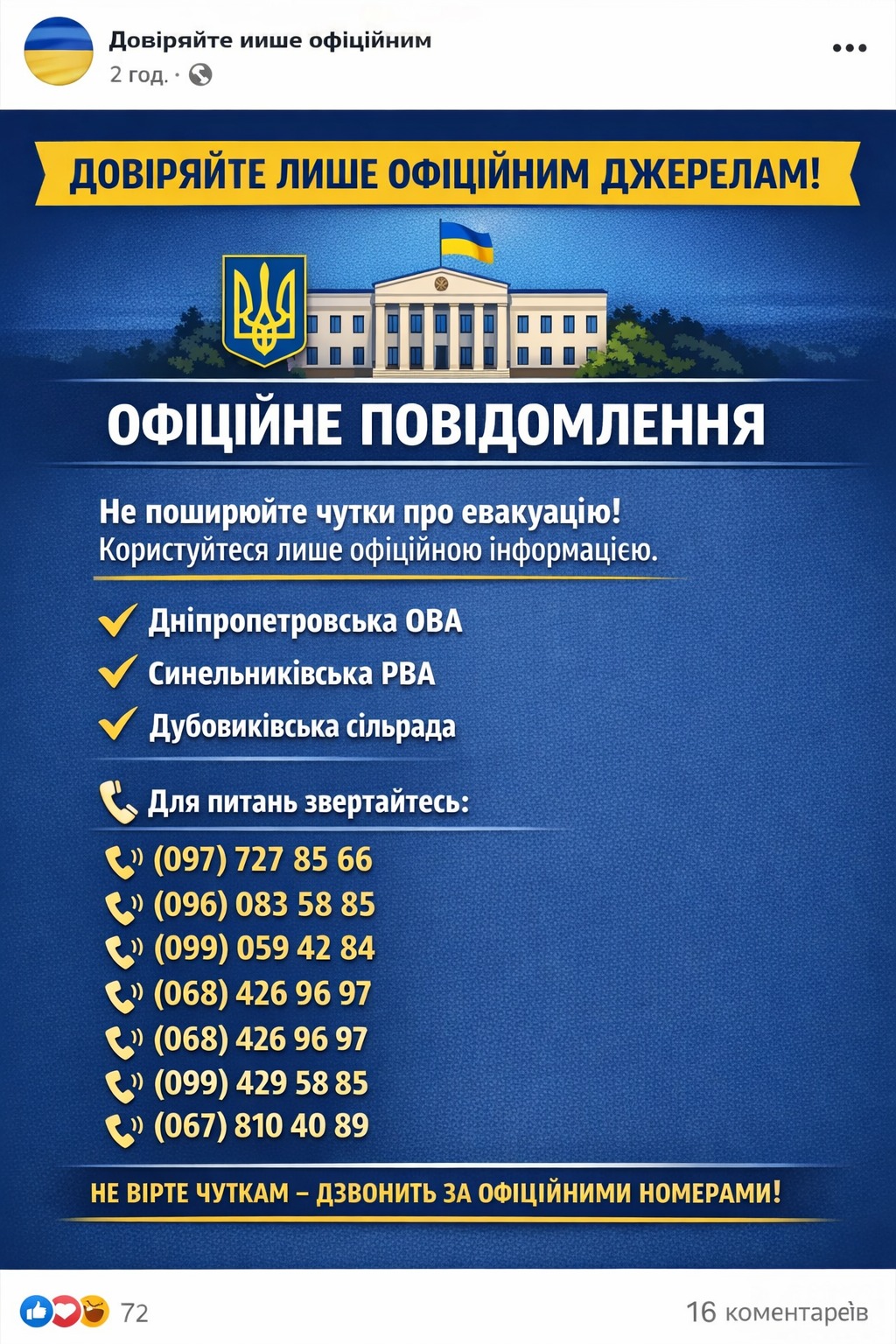довіряйте лише офіційним джерелам інформації — це вкрай важливо для безпеки кожного.