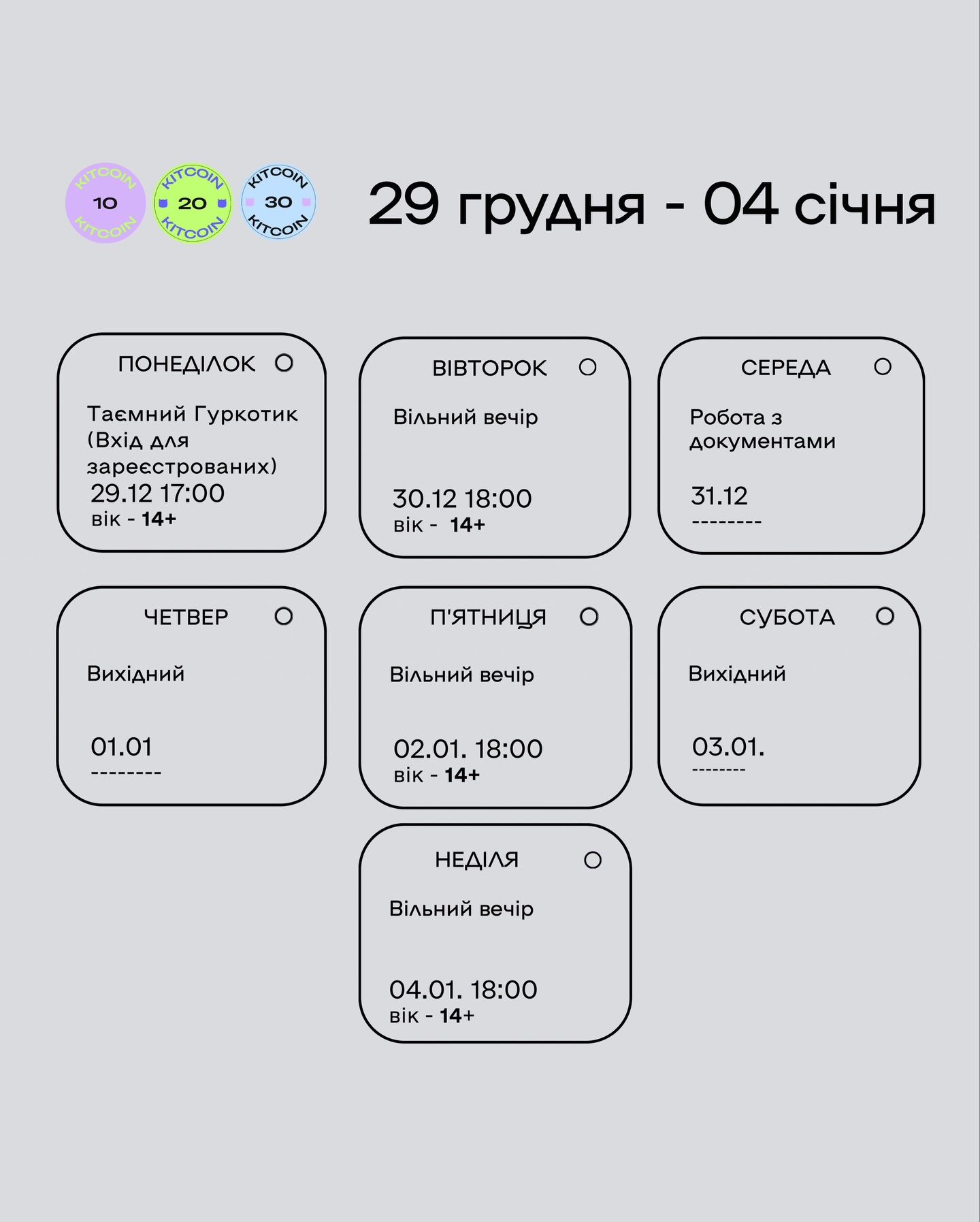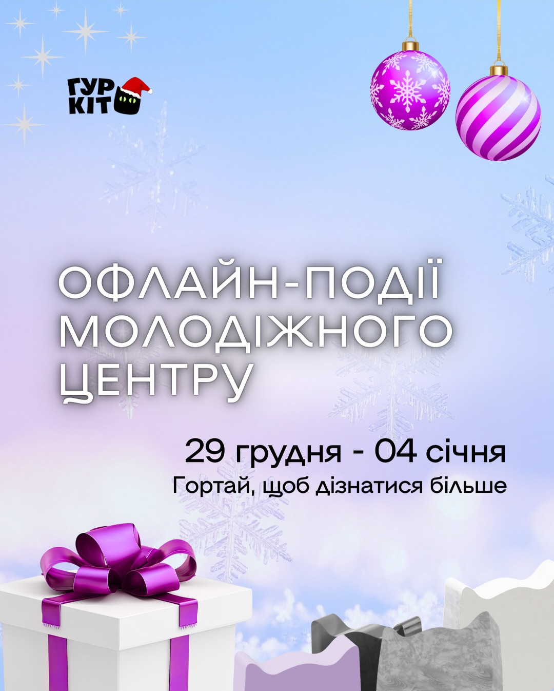 Вараський молодіжний центр “Гуркіт” запрошує приєднатися до цікавих подій, які відбудуться офлайн цього тижня — з 29 грудня по 04 січня.