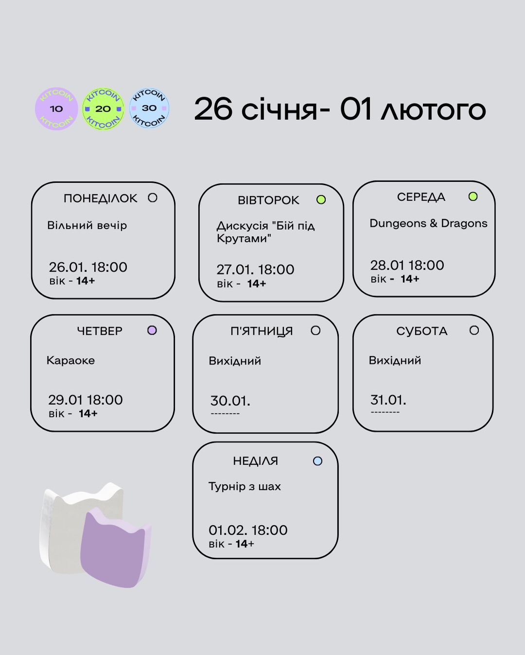 Вараський молодіжний центр “Гуркіт” запрошує приєднатися до цікавих подій, які відбудуться офлайн цього тижня — з 26 січня по 01 лютого.