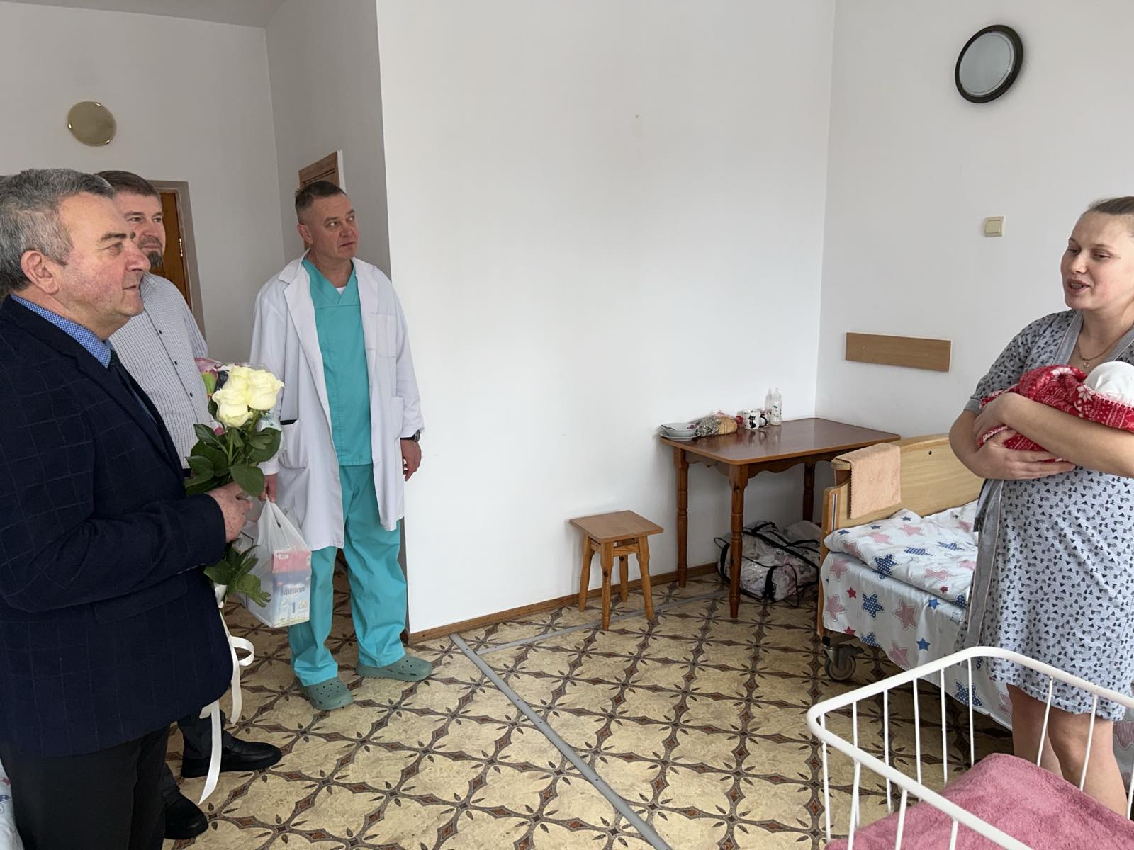 Традиційно у перший день нового року міський голова Василь Антонюк відвідав акушерське відділення Дубенської міської лікарні та привітав діток, котрі нещодавно з’явилися на світ і наразі перебувають у закладі.