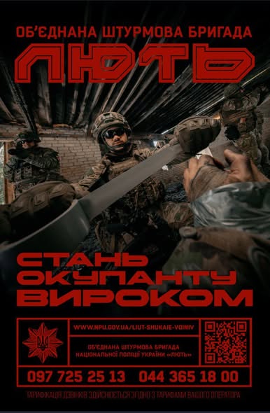 🇺🇦Обʼєднана штурмова бригада Національної поліції України «Лють» запрошує до своїх лав. Приєднуйся до захисників країни та роби свій внесок у перемогу.
