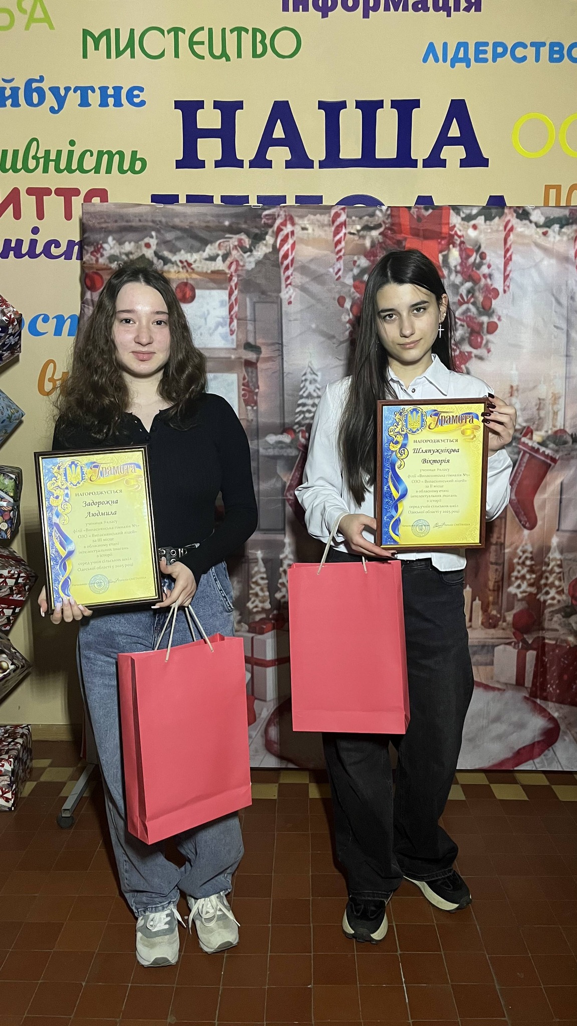 – Тодорова Тетяна, учениця 9 класу філії “Випаснянська гімназія № 2” ОЗО “Випаснянський ліцей”, ІІ місце з української мови та літератури;