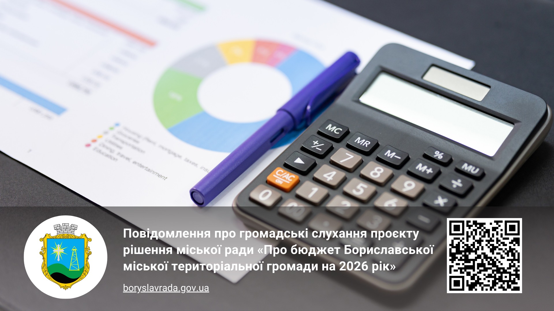 Оголошення про громадські слухання проєкту рішення міської ради «Про бюджет Бориславської міської територіальної громади на 2026 рік»