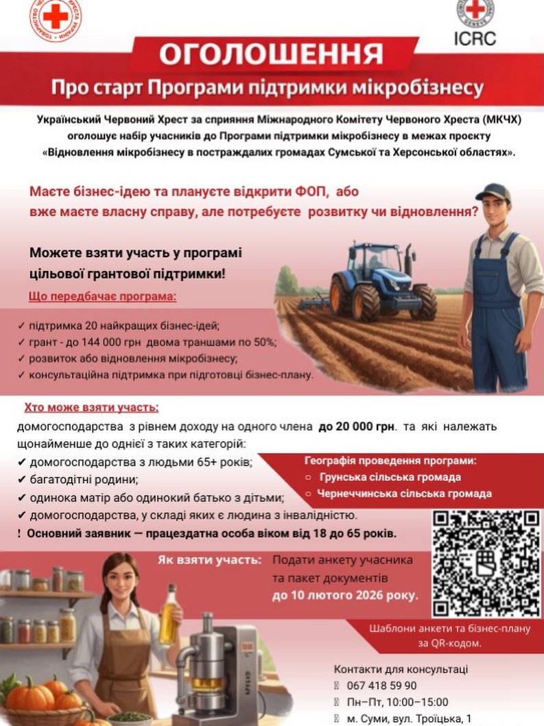 «Відновлення мікробізнесу в постраждалих громадах Сумської та Херсонської областей»