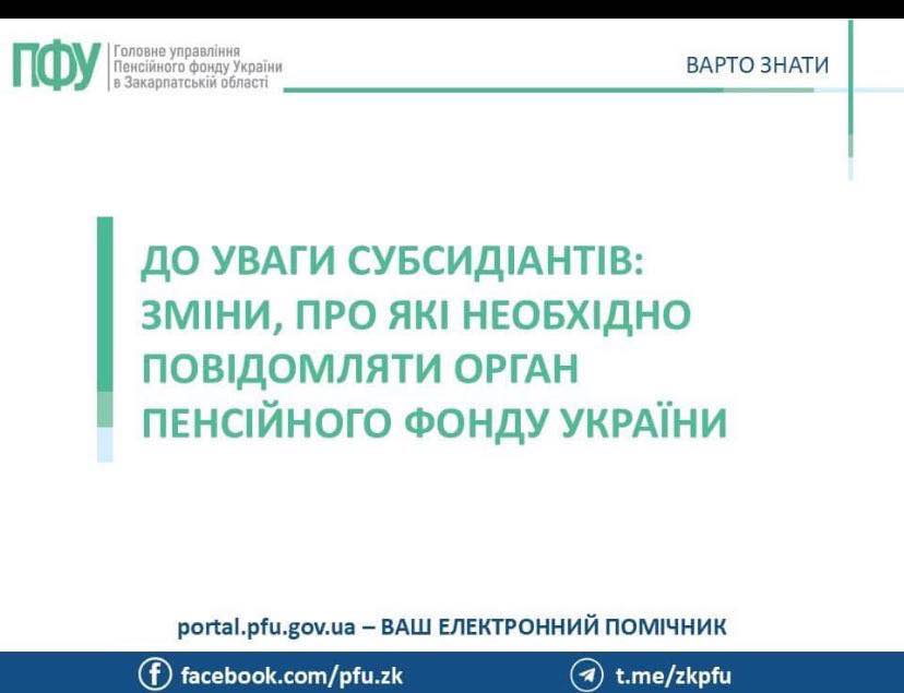 Одержувач житлової субсидії зобов’язаний у 30-денний термін з моменту виникнення обставин, які впливають на призначення субсидії, інформувати про них орган Пенсійного фонду України.