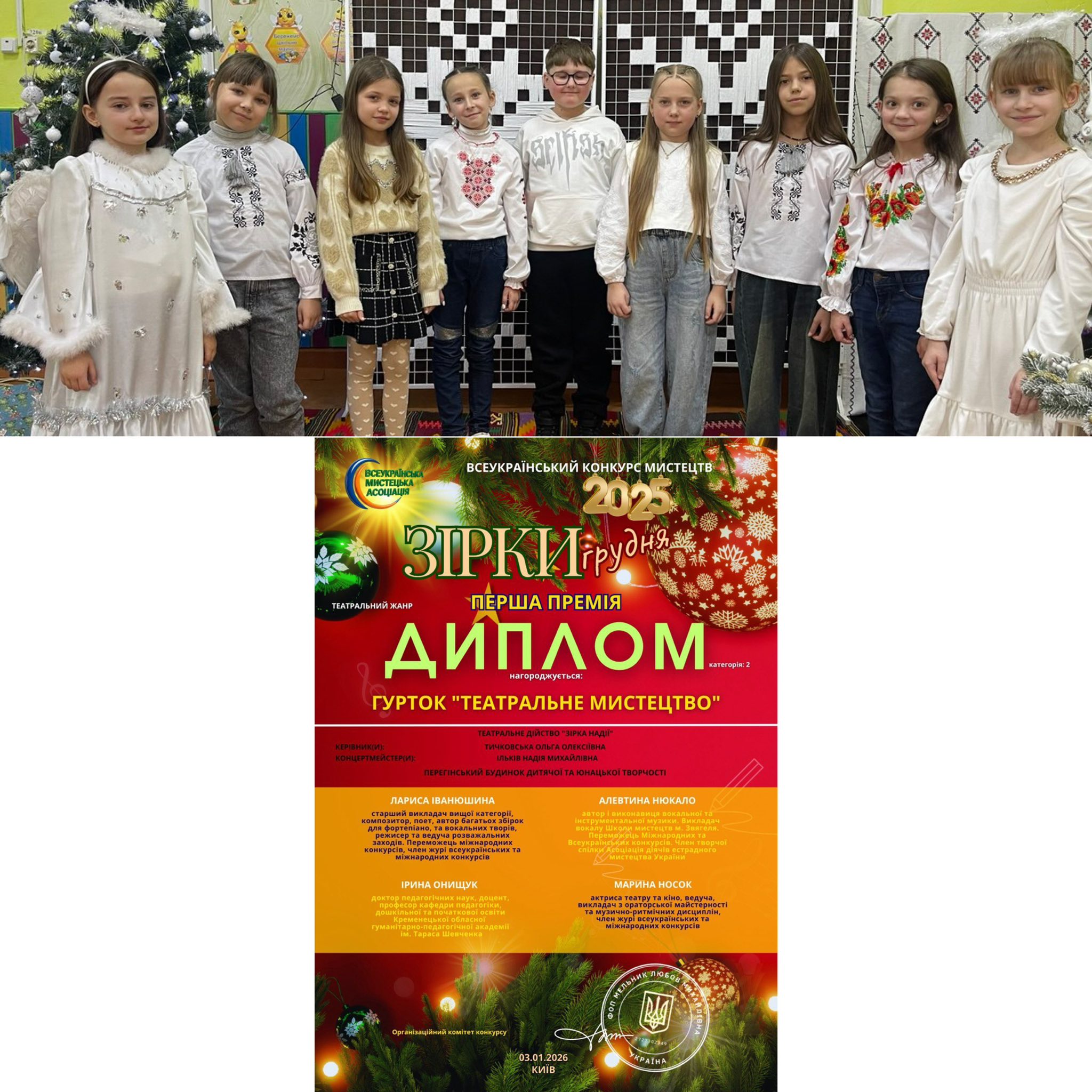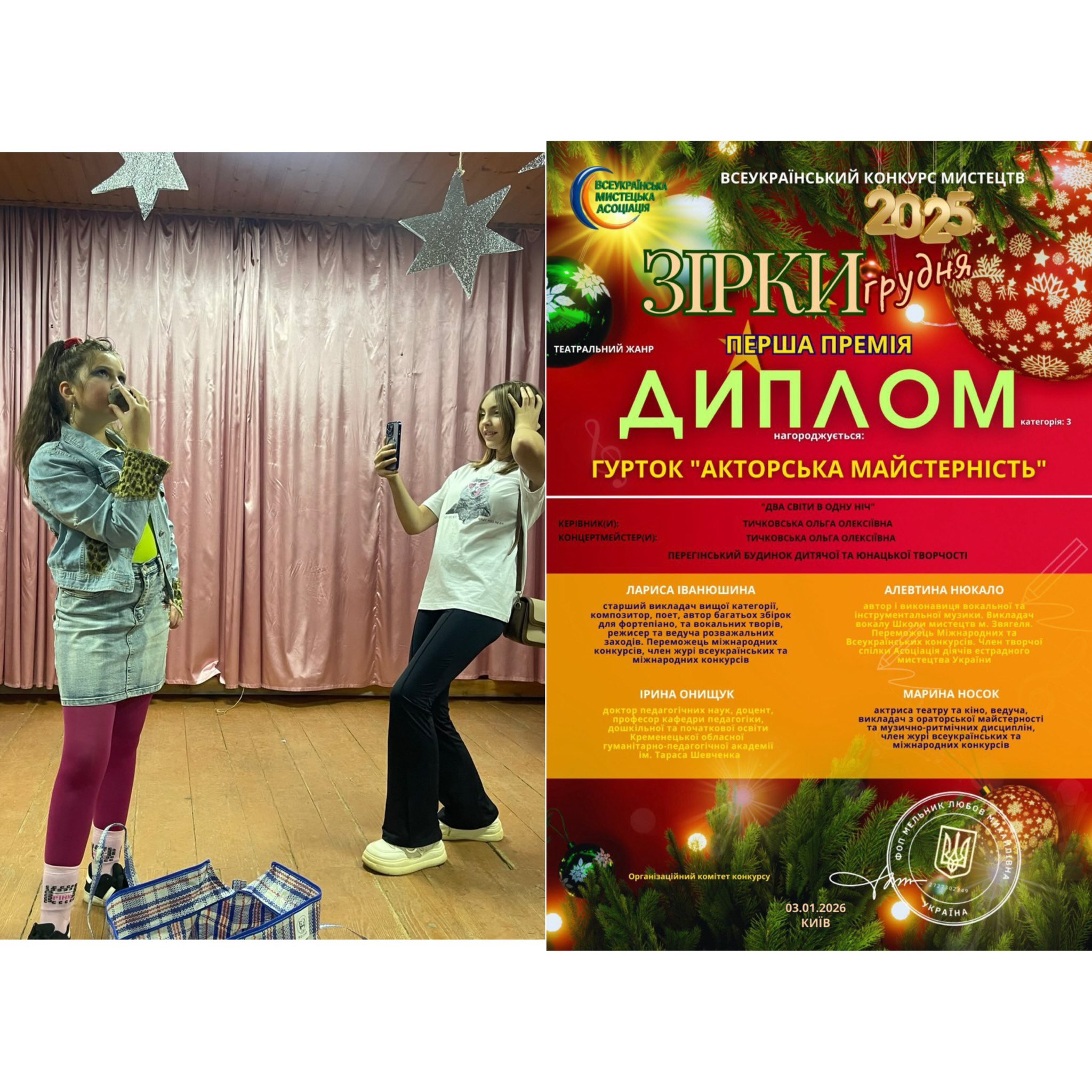 Одразу два перші місця!!!🏆🏆 у дистанційному Всеукраїнському конкурсі мистецтв “Зірки грудня”: