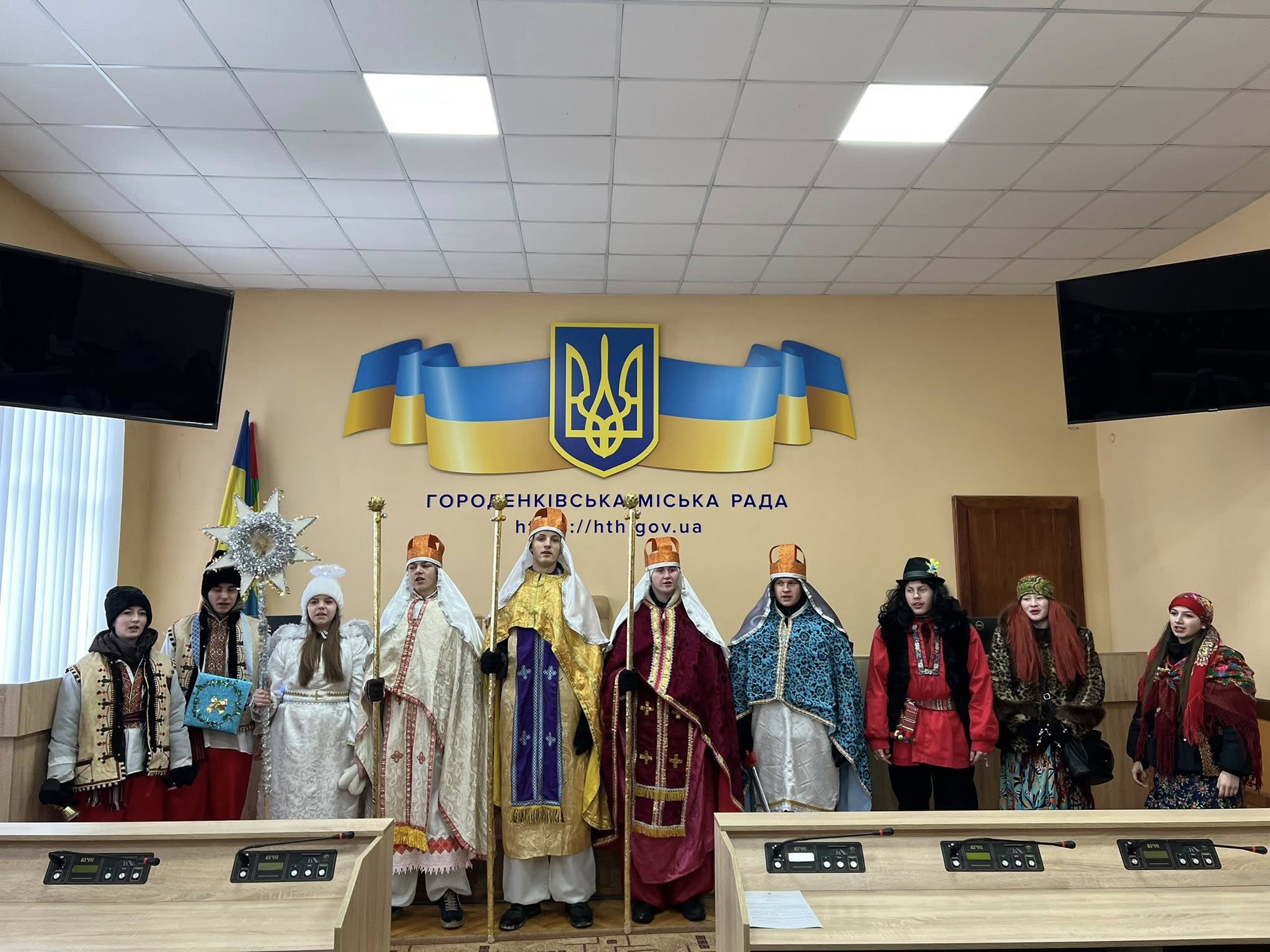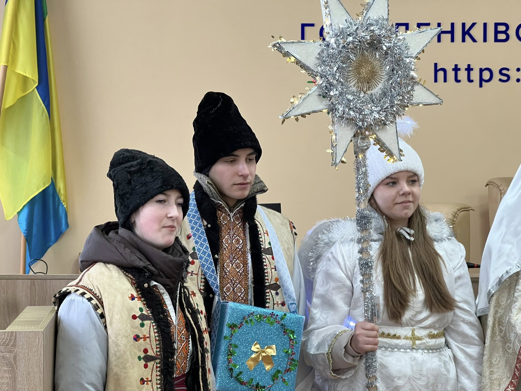 🪅❄️До міської ради завітав вертеп Олієво-Королівського старостинського округу.