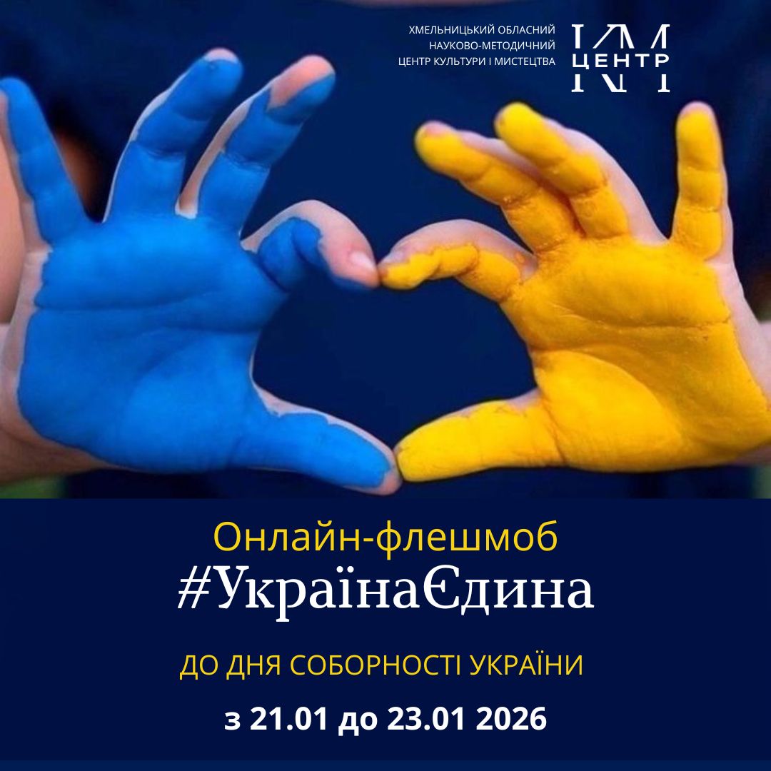 Хмельницький обласний науково-методичний центр культури і мистецтва запрошує заклади культури долучитися до онлайн-флешмобу до Дня Соборності України «Україна єдина».