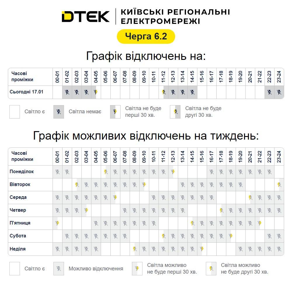📢 Оновлений графік відключень на 17 січня для Тетіївської громади