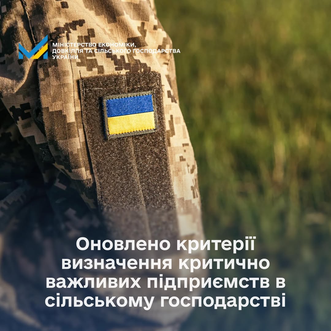 ✅Оновлено критерії визначення критично важливих підприємств в сільському господарстві