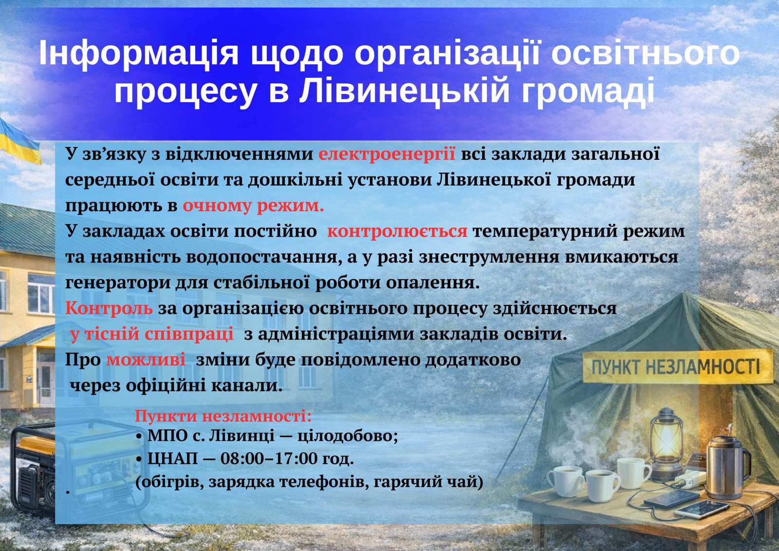 опалення й організацією освітнього процесу.
