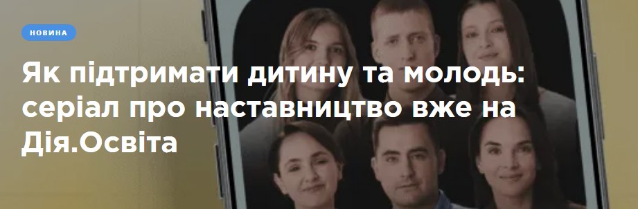 На Дія.Освіта зʼявився новий освітній серіал «Наставництво: що, для кого і як працює», повідомили у Міністерстві соцполітики. Це 10 коротких серій тривалістю 4–10 хвилин із зрозумілими поясненнями, прикладами та інструментами, які можна застосовувати одразу.