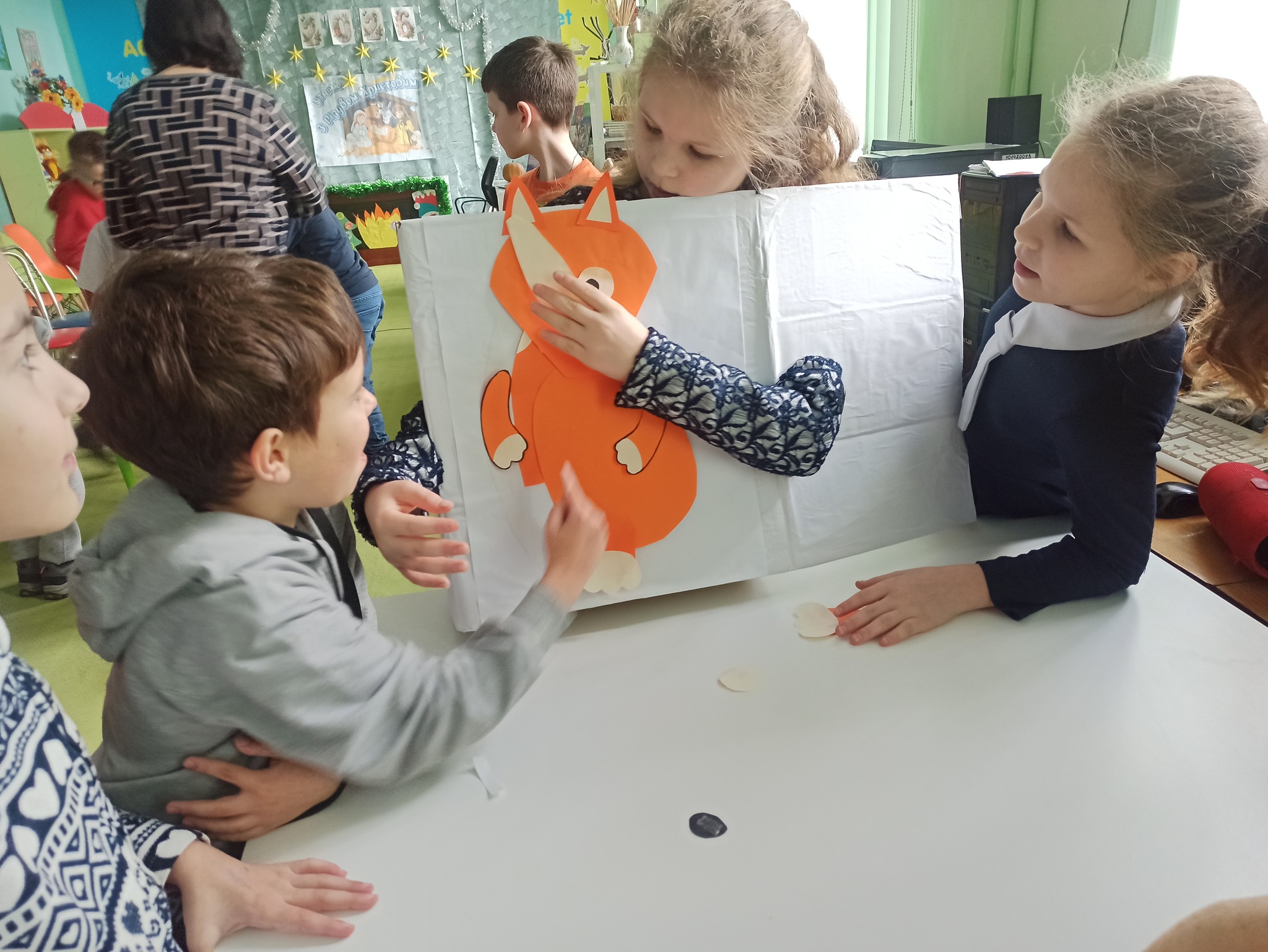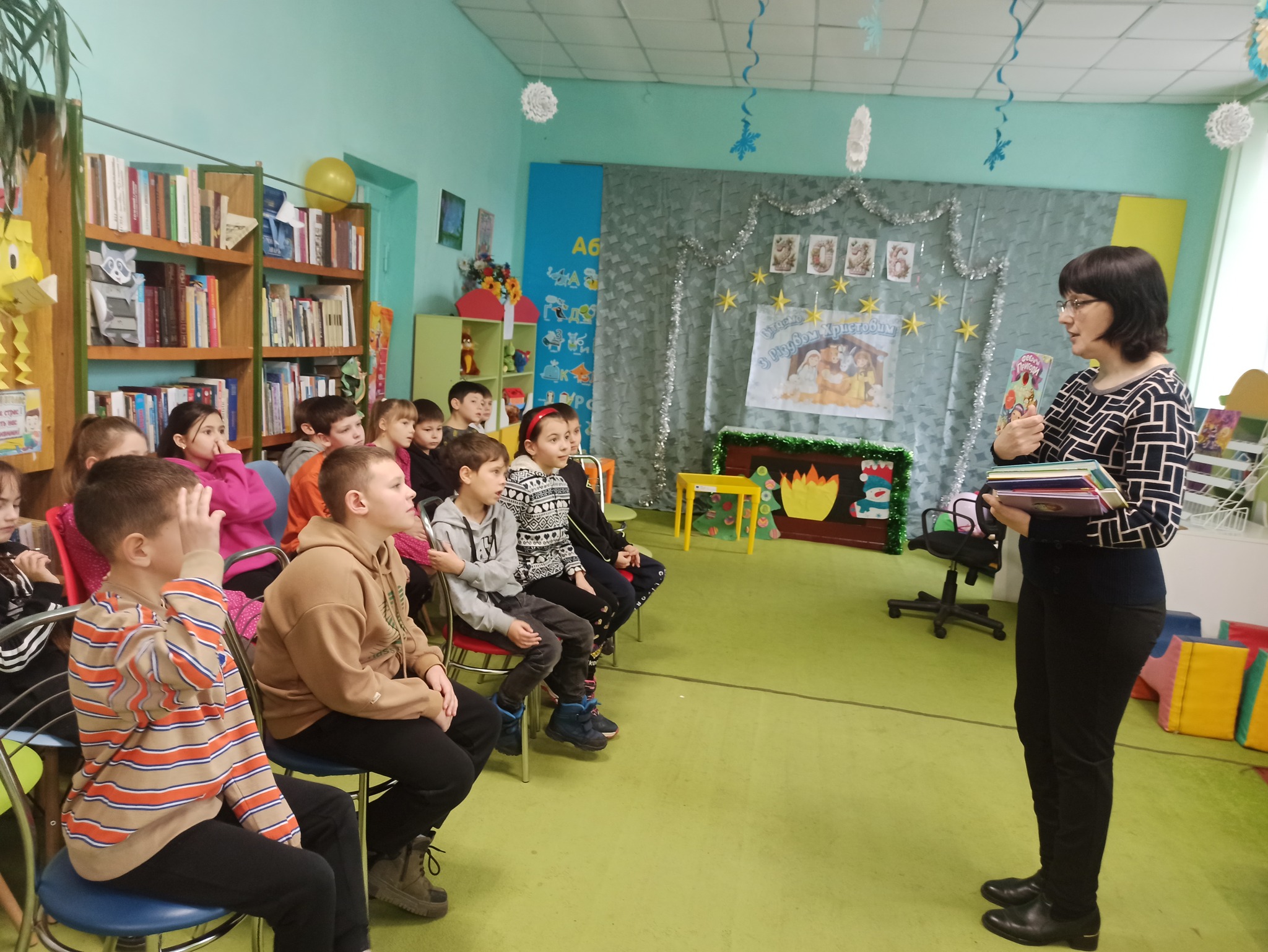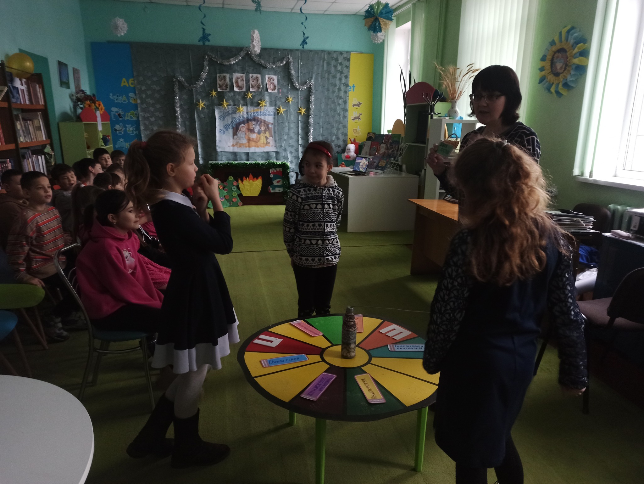 Сьогодні до Олександрівської бібліотеки для дітей завітали читачі 3-Б класу (кл. кер. Хохлова Н.В., асистент вчителя Ситник Я.А., за сприяння бібліотекаря Токар О.М.) КЗ «Олександрівський ліцей №2», на веселу та пізнавальну книжкову заплутанку «Книжка відкривається — дива починаються». Подорож у світ книжкових цікавинок розпочалася з «колеса читача», яке пропонувало учасникам різні завдання та випробування. Відкриваючи сектори, діти брали участь у творчому конкурсі, виконували веселу руханку, тренували пам’ять у «книжковому меморі», відгадували сюжети за «казковими емодзі» та змагалися в дотепних «казкових перегонах».