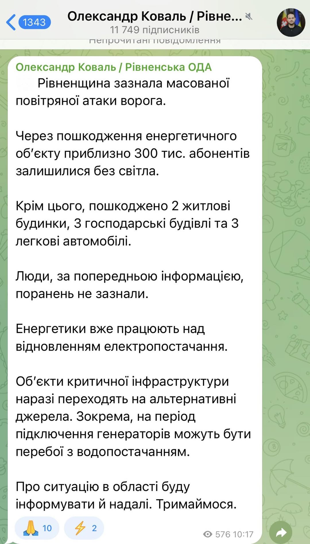 Енергетики Рівнеобленерго спільно з НЕК «Укренерго» працюємо над відновленням електропостачання у області. Робимо усе можливе для якнайшвидшої появи світла для населення та бізнесу краю.