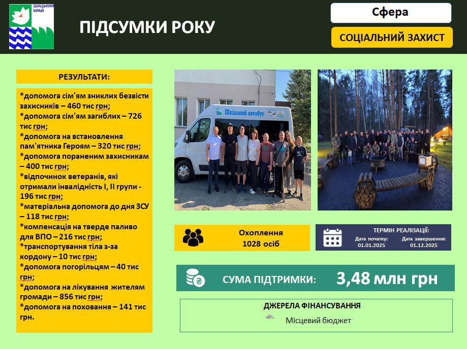 🔹2025-й став для Шацької громади роком відповідальності, єдності та конкретних дій. Ми зосередилися на зміцненні її спроможності, покращенні якості життя людей, міжнародній співпраці та реалізації важливих проєктів.