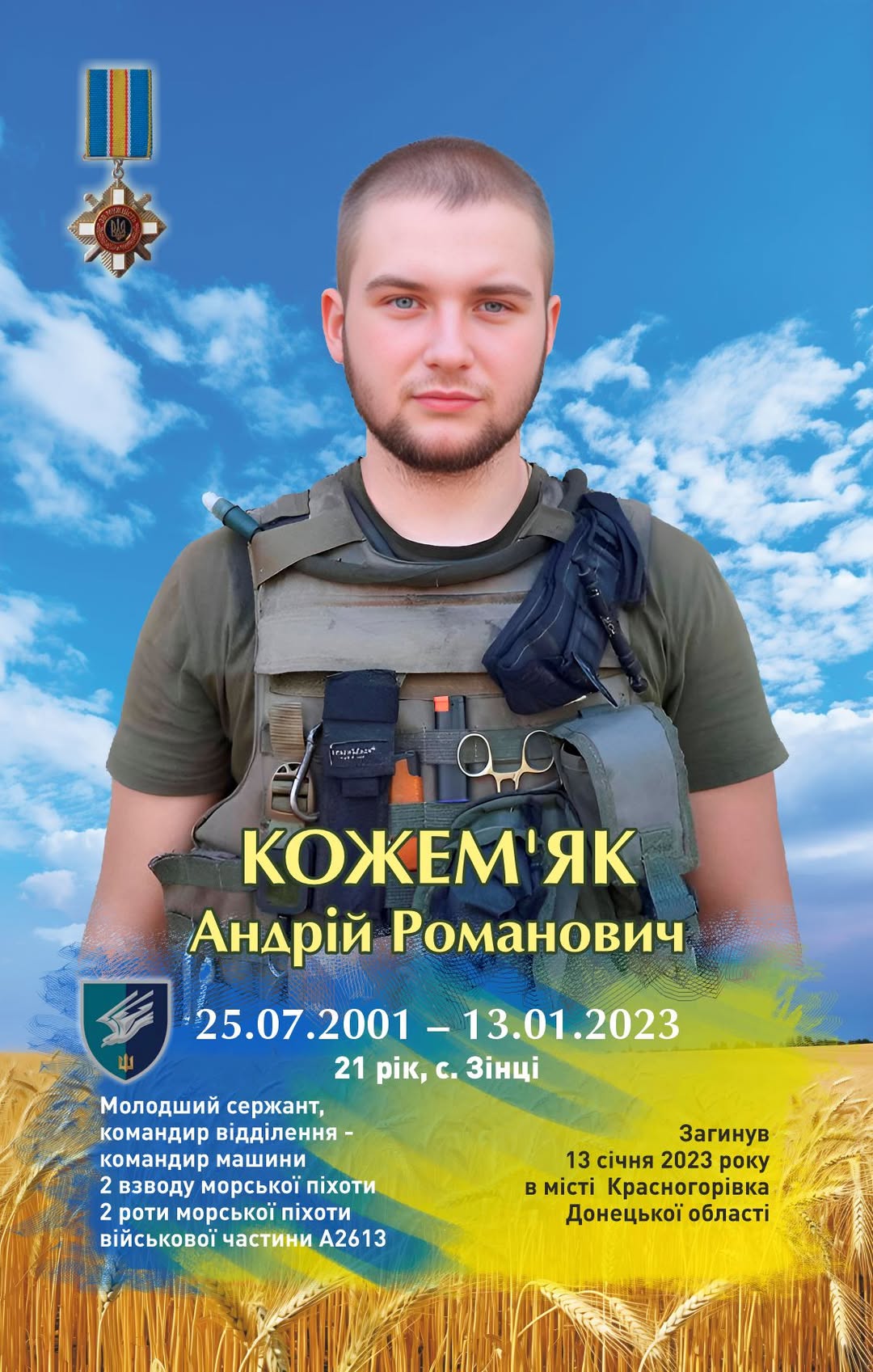 13 січня – річниця загибелі Героя з нашої громади Андрія Романовича Кожем’яка, мешканця села Зінці.