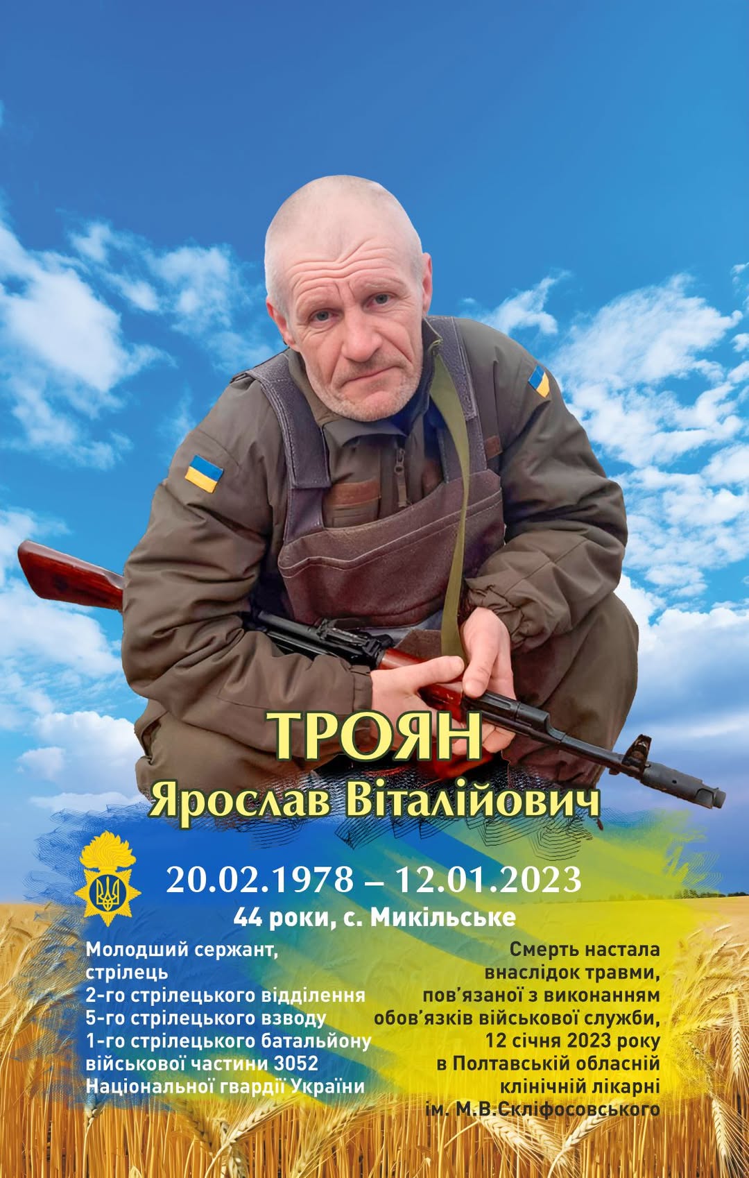12 січня — річниця смерті нашого земляка, Ярослава Віталійовича Трояна, мешканця села Микільське.