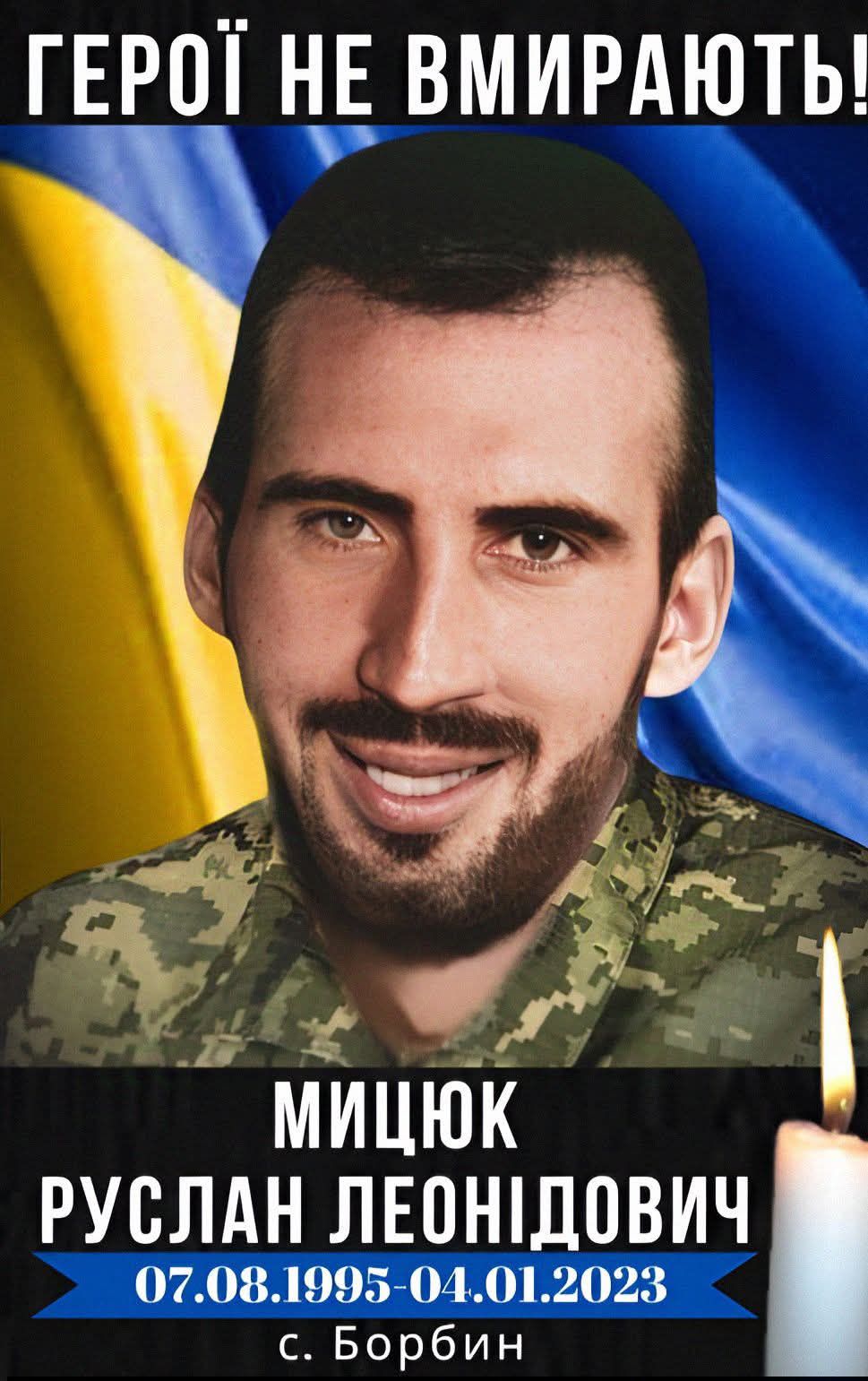 Сьогодні минає третя річниця з дня загибелі захисника України, нашого земляка — МИЦЮКА РУСЛАНА ЛЕОНІДОВИЧА.