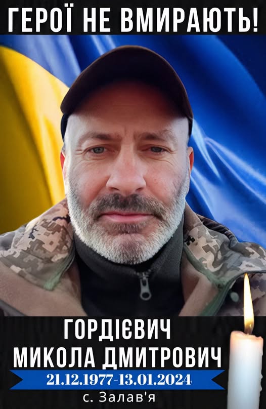 Сьогодні минає друга річниця з дня загибелі нашого Захисника, молодшого сержанта, командира протитанкових ракетних комплексів, жителя села Залав’я – ГОРДІЄВИЧА МИКОЛИ ДМИТРОВИЧА.