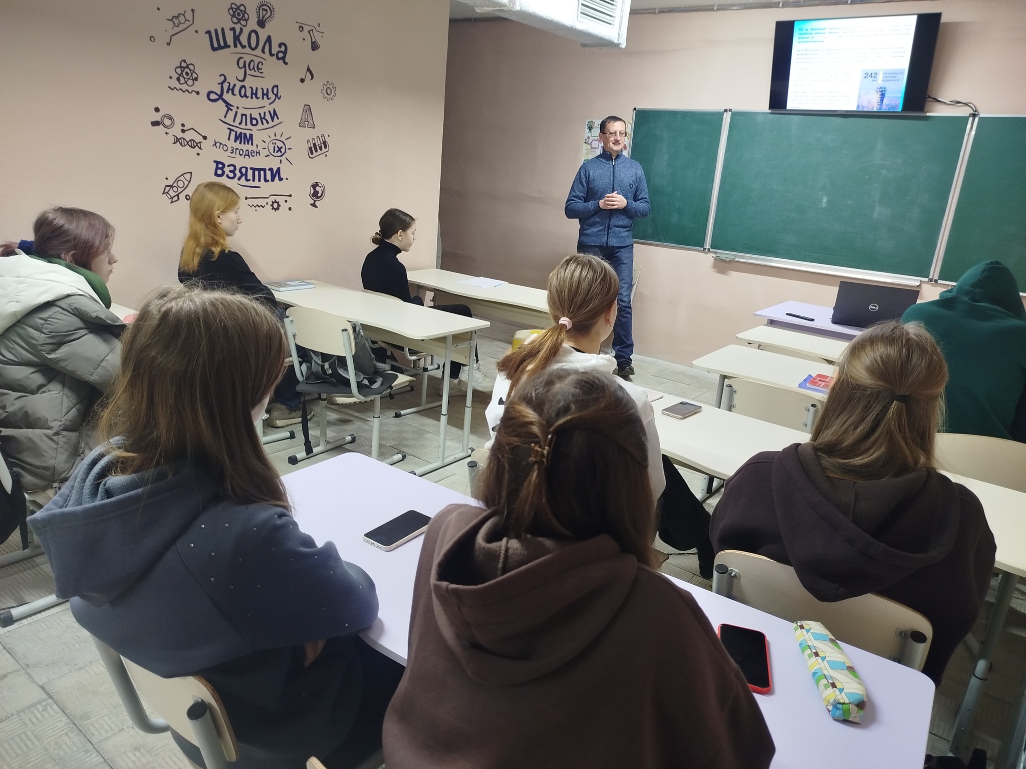 Науковий співробітник музею Михайло ХОЛОД для ліцеїстів представив презентацію та розповів про мужність, патріотизм та бойовий дух захисників Донецького аеропорту.