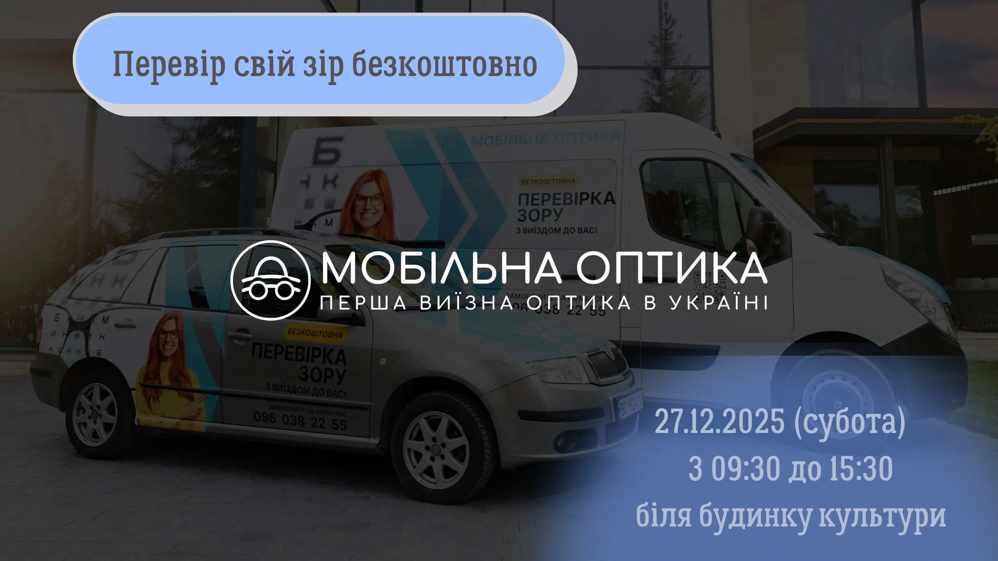 📍МОБІЛЬНА ОПТИКА буде стояти біля БУДИНКУ КУЛЬТУРИ