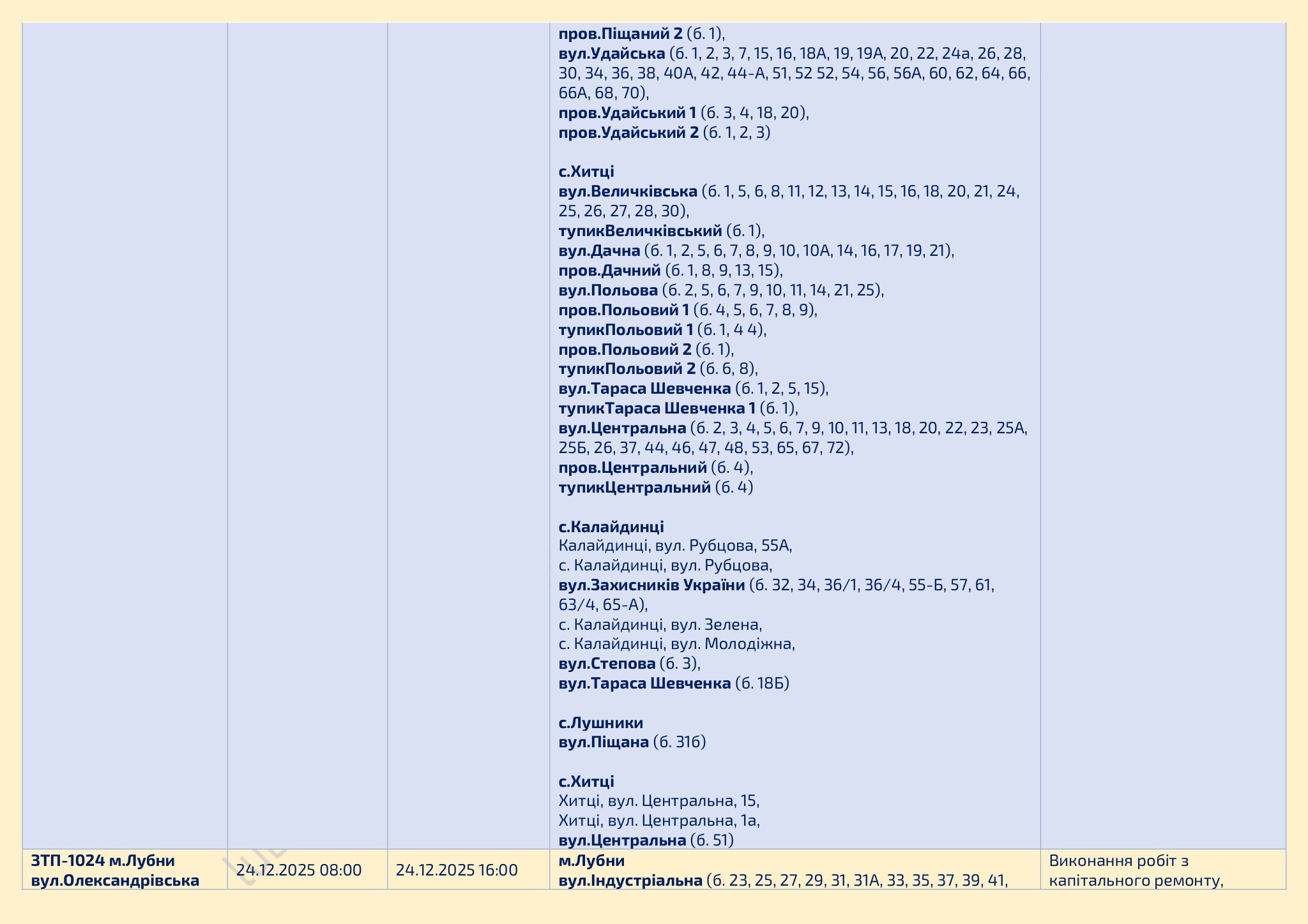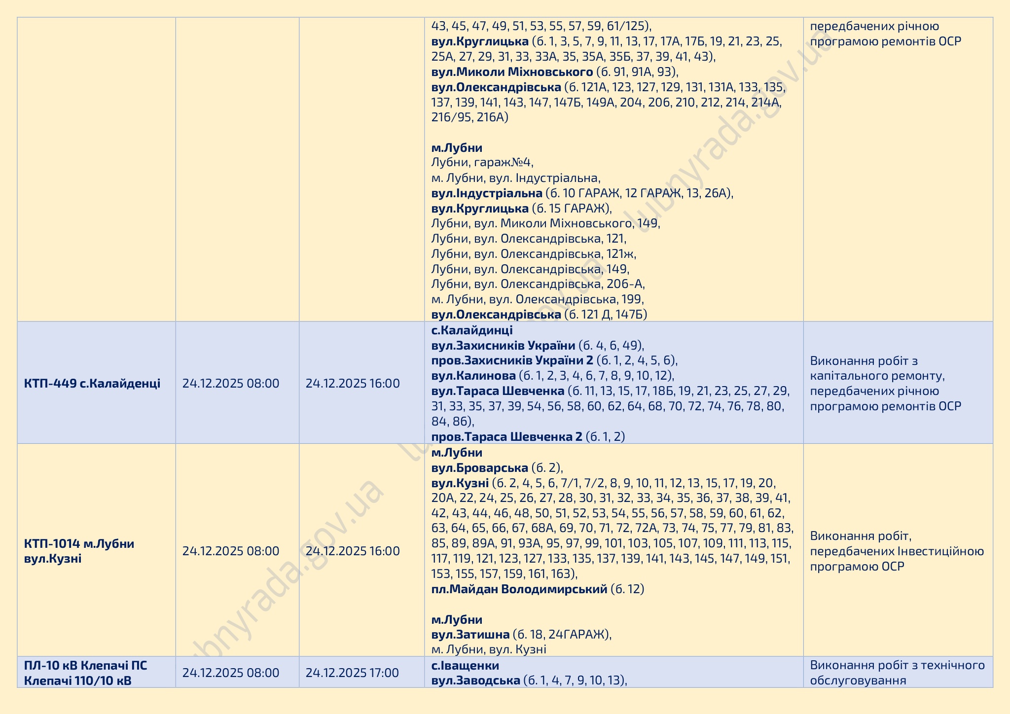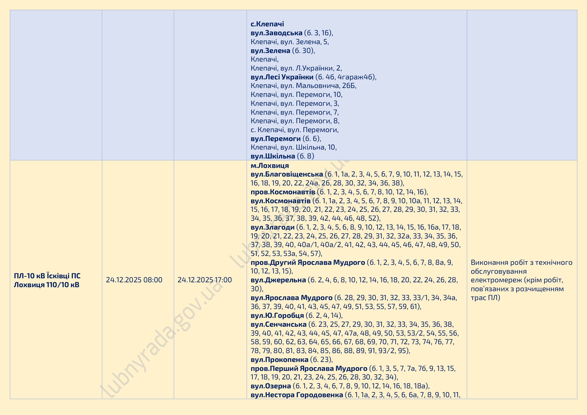 💡ПЛАНОВІ ВІДКЛЮЧЕННЯ ЕЛЕКТРОЕНЕРГІЇ НА 24.12.2025💡🔌