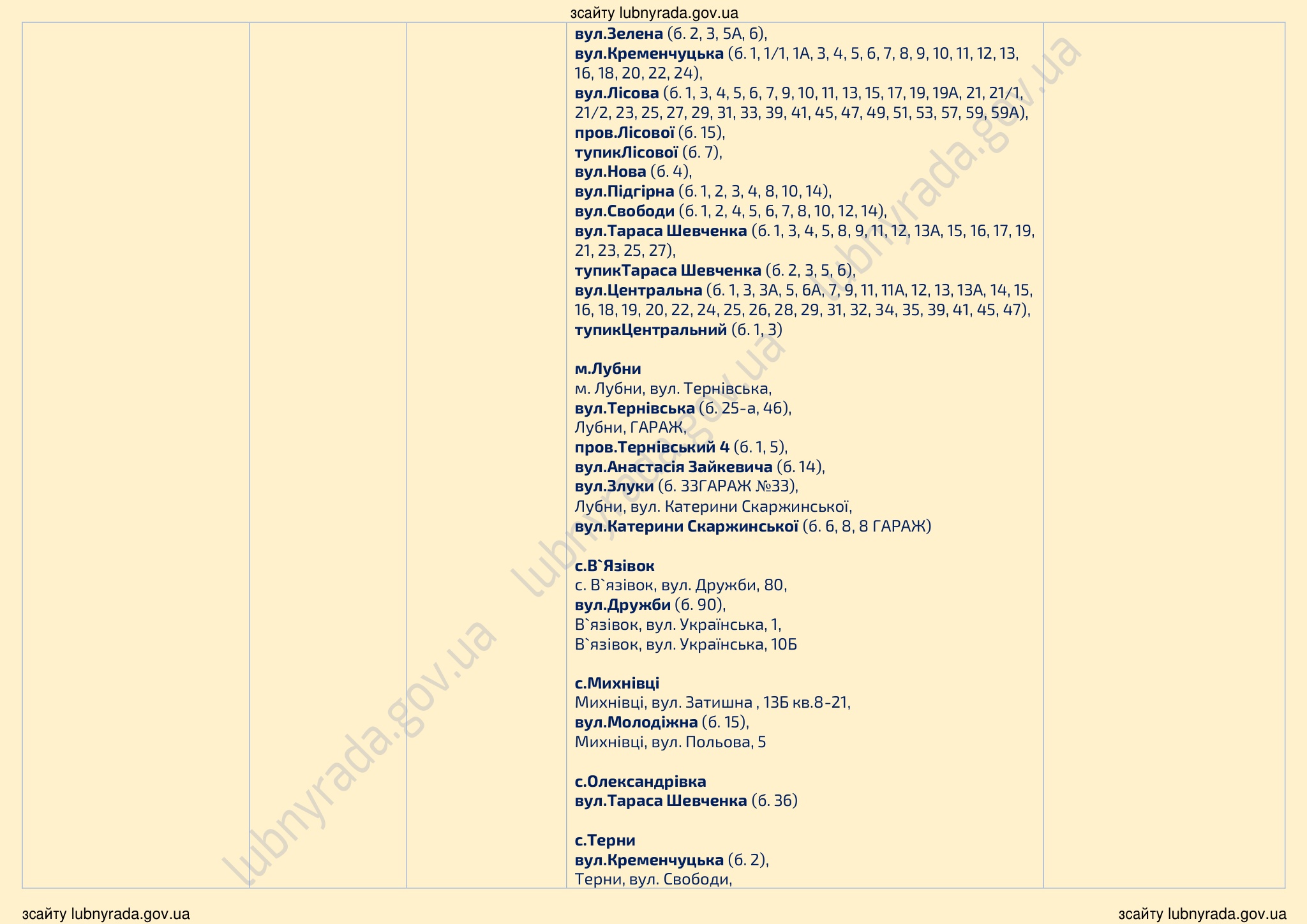 У зв’язку із проведенням робіт у мережах АТ «ПОЛТАВАОБЛЕНЕРГО» можливі тимчасові перерви в електропостачанні споживачів. Дата, орієнтовний час початку та закінчення перерви вказані у таблиці.