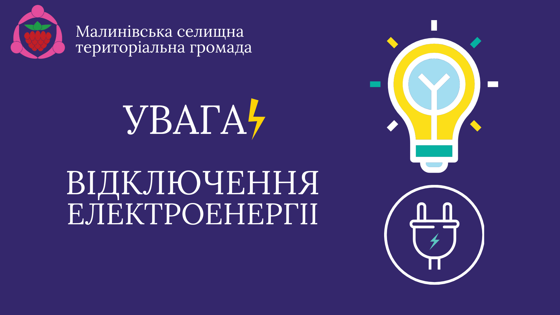 ПЛАНОВЕ ВІДКЛЮЧЕННЯ ЕЛЕКТРОПОСТАЧАННЯ Шановні мешканці Малинівської громади! …