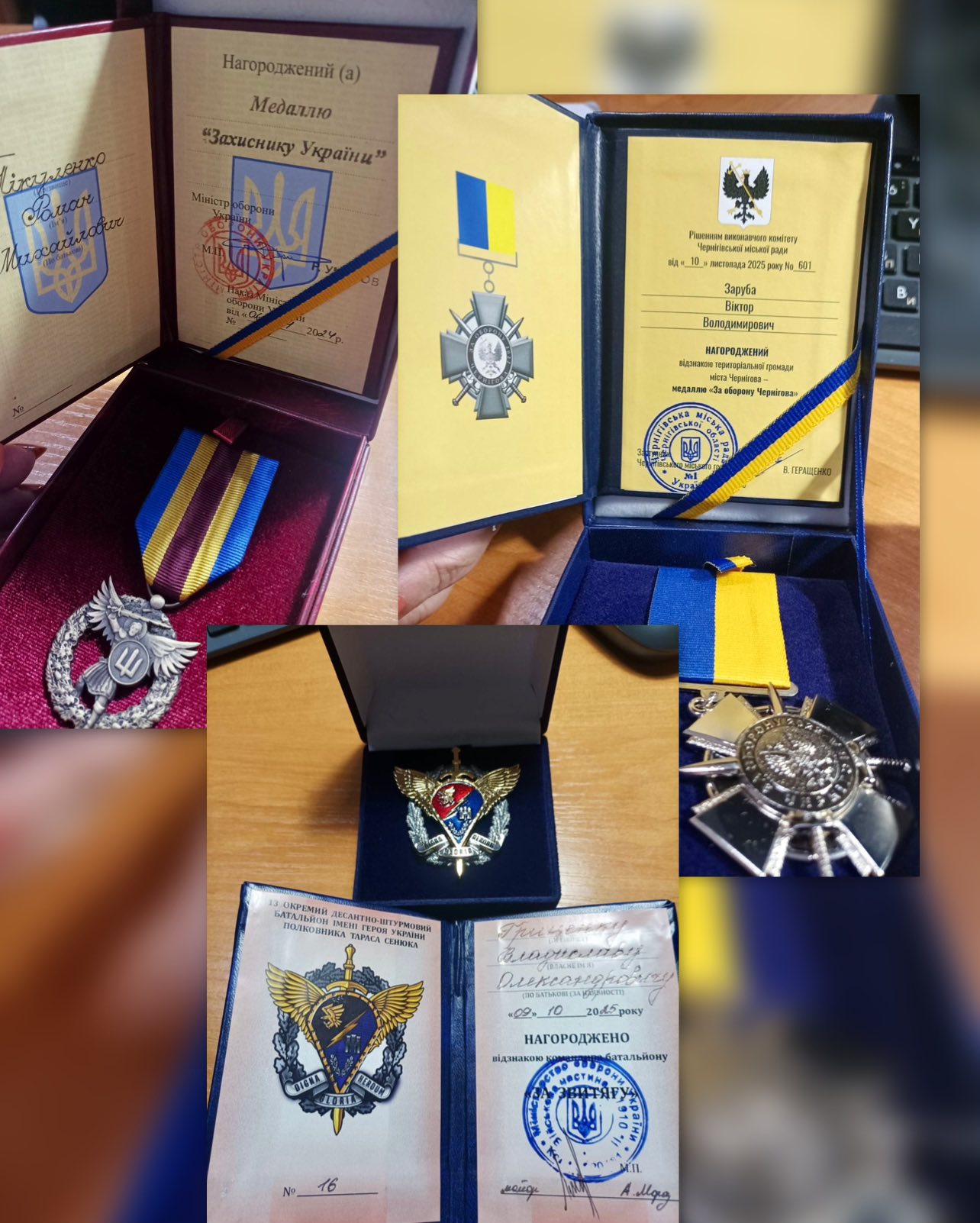 🏅Медаллю територіальної громади міста Чернігова «За оборону Чернігова» нагороджено Зарубу Віктора Володимировича — за мужність і незламність у найважчі дні оборони міста.