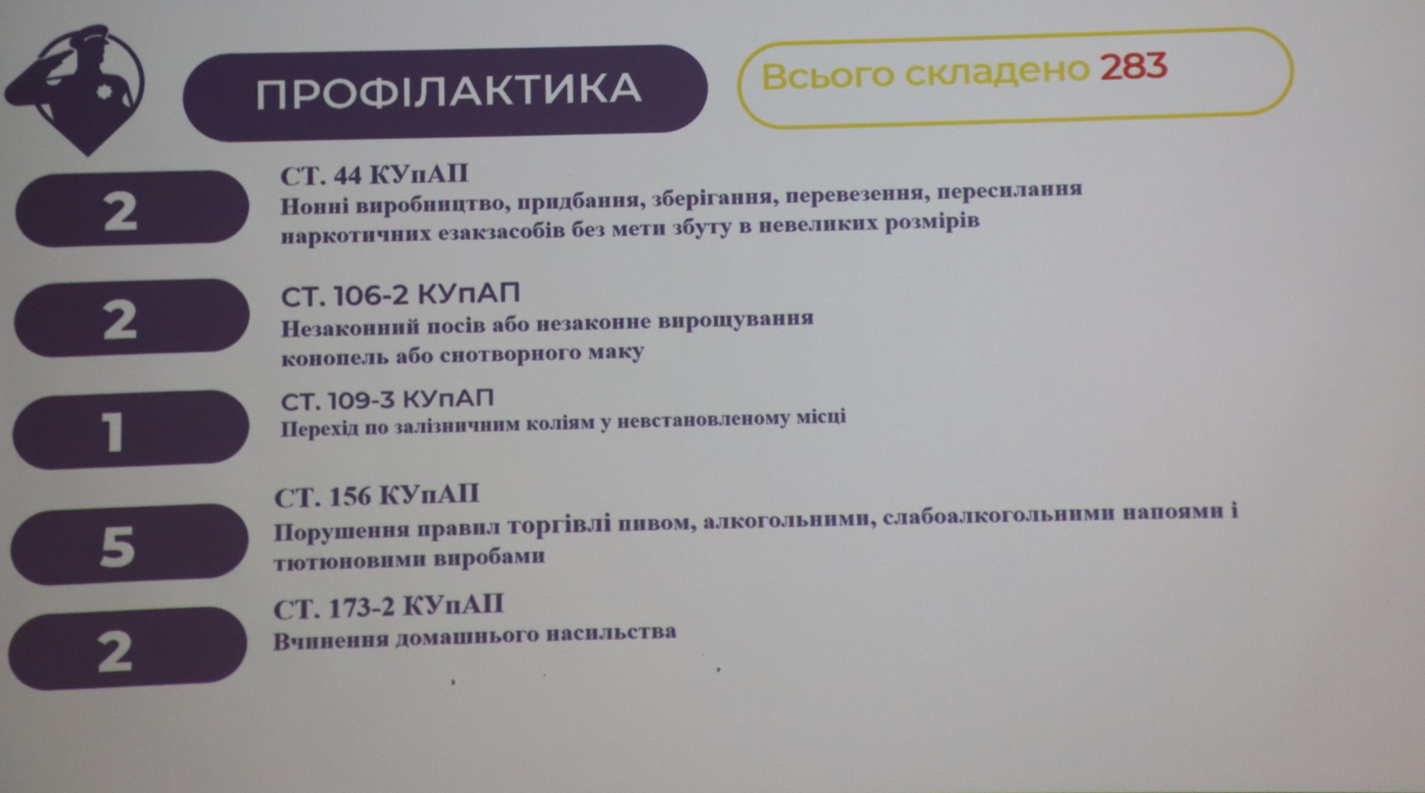 🔹Складено 238 протоколів за адміністративні правопорушення. Правопорушниками сплачено до бюджету громади штрафів на загальну суму 70940 грн.