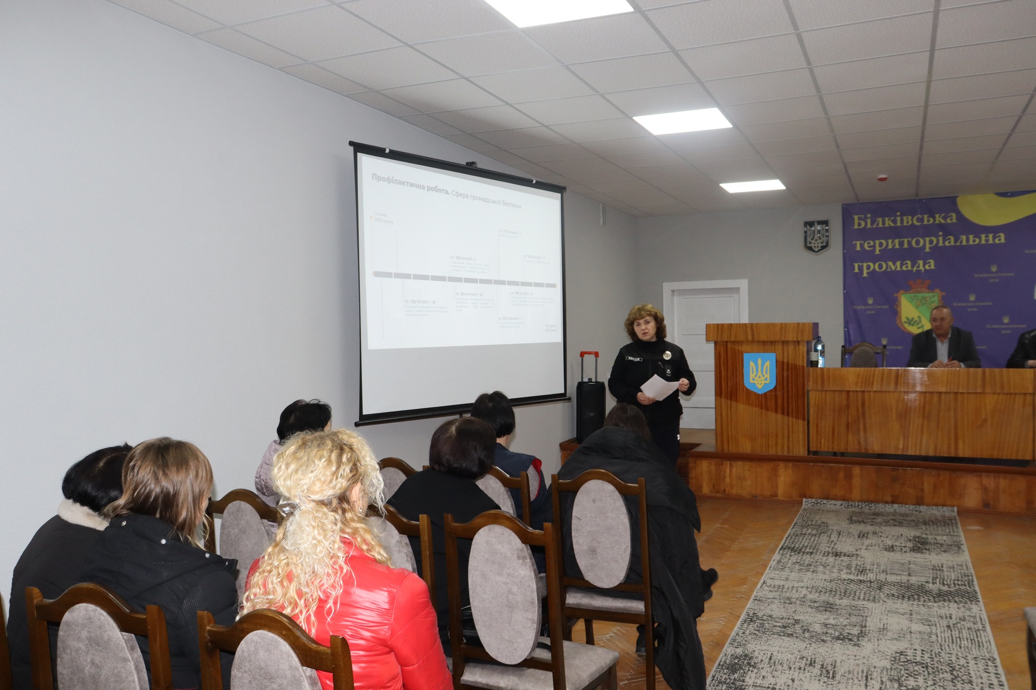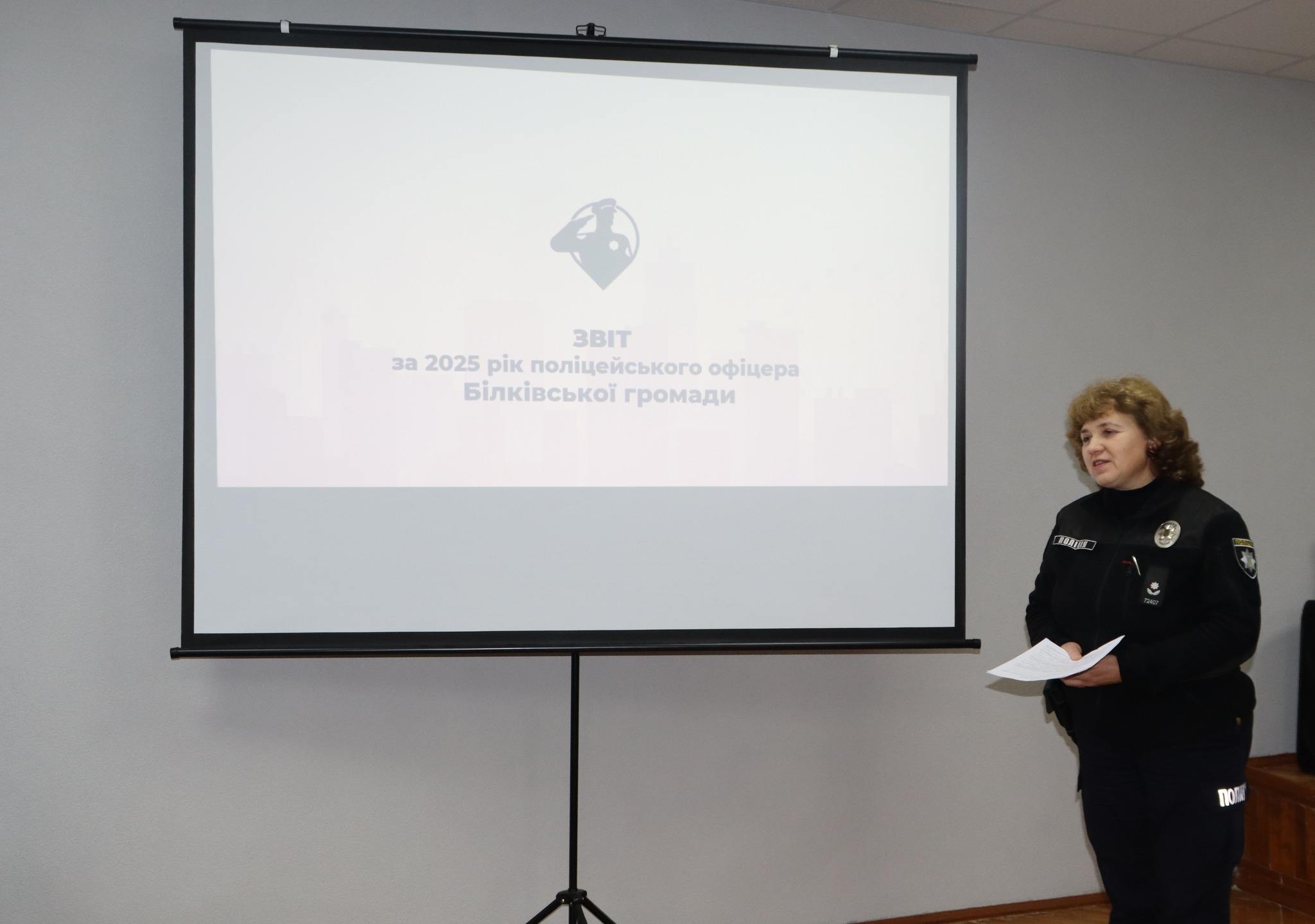 Днями на засіданні виконкому сільської ради поліцейська офіцерка громади, майор поліції Віта Горзов прозвітувала про роботу за поточний рік. Її звіт взято до відома.