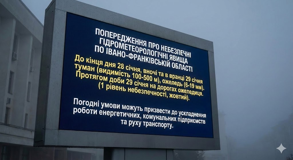 ПОПЕРЕДЖЕННЯ ПРО НЕБЕЗПЕЧНІ ГІДРОМЕТЕОРОЛОГІЧНІ ЯВИЩА ПО ІВАНО-ФРАНКІВСЬКІЙ ОБЛАСТІ.