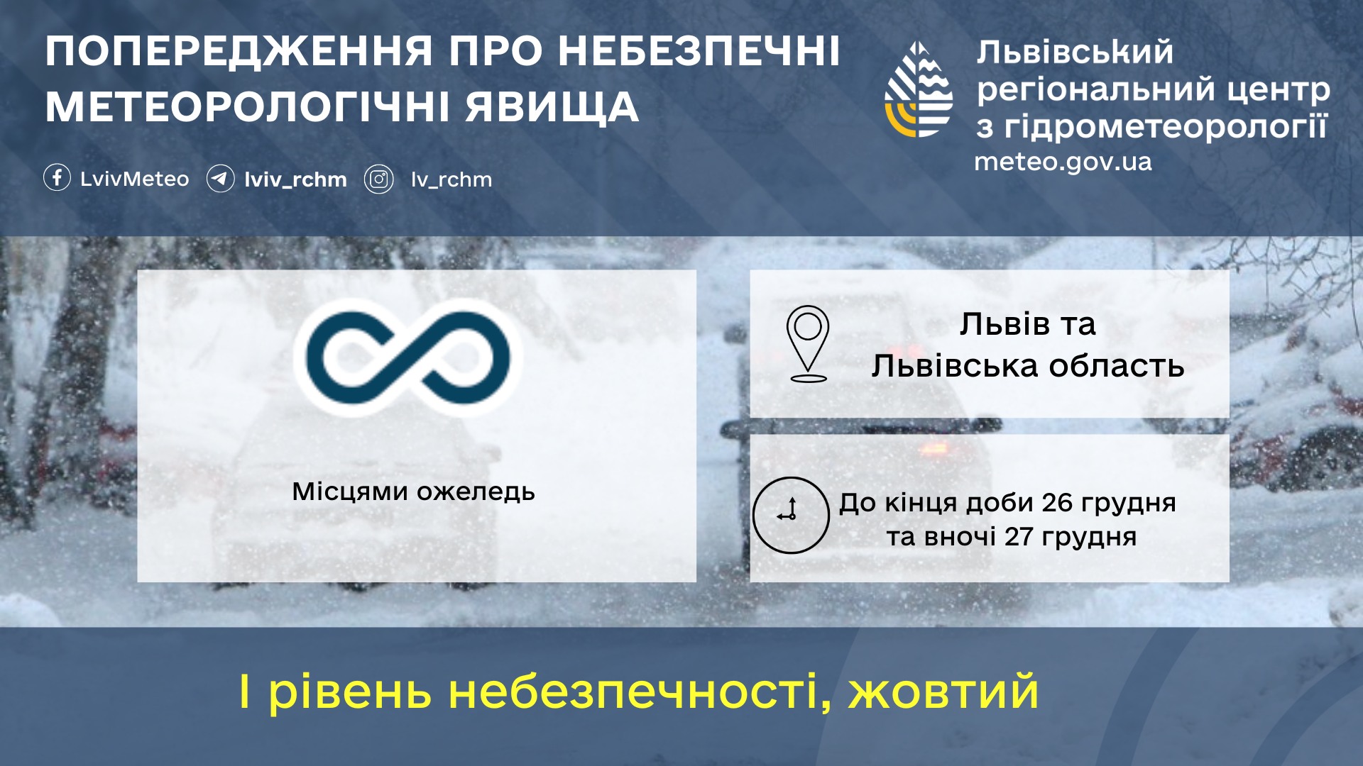 До кінця доби 26 грудня та вночі 27 грудня місцями ожеледь (6 – 19 мм).
