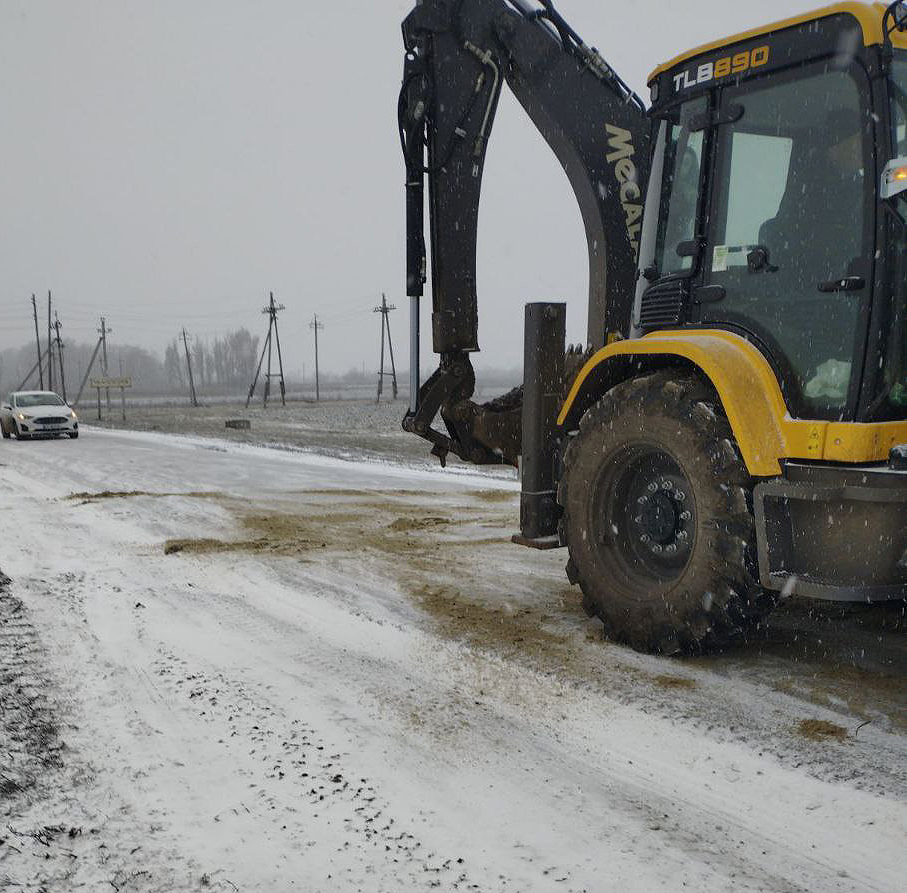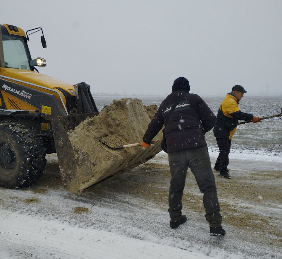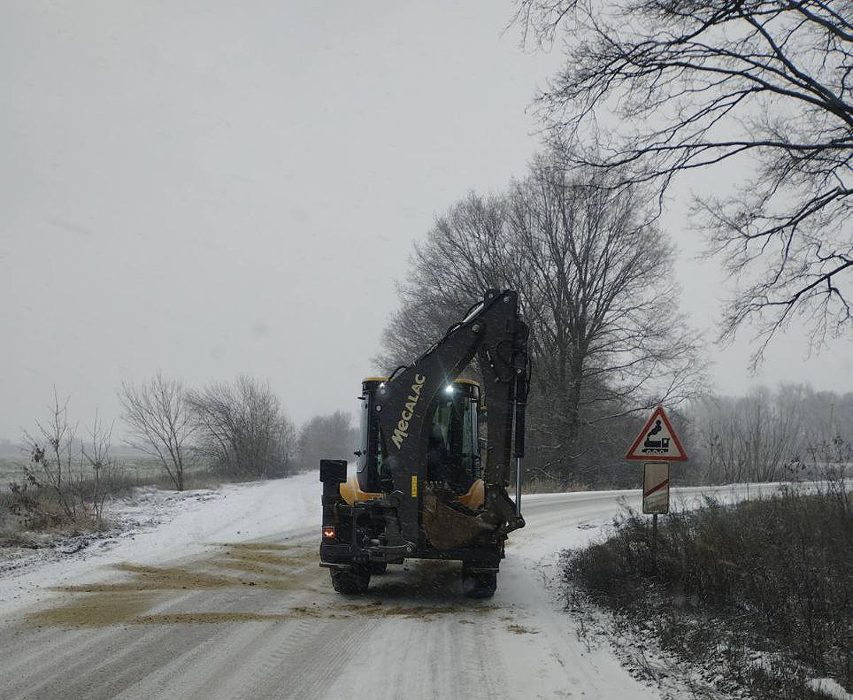 Аби зменшити аварійність, комунальники громади вийшли посипати полотно піщано-сольовою сумішшю.