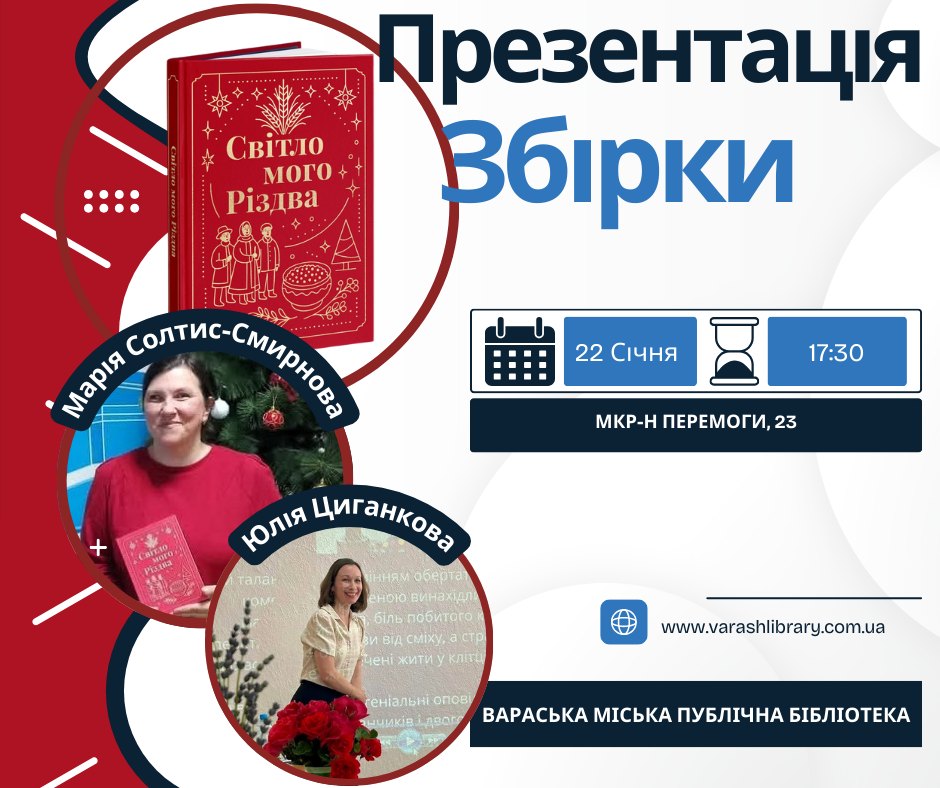 📚Відбудеться презентація збірки “Світло мого Різдва”, співавторами якої є М. Солтис-Смирнова та Ю. Циганкова.