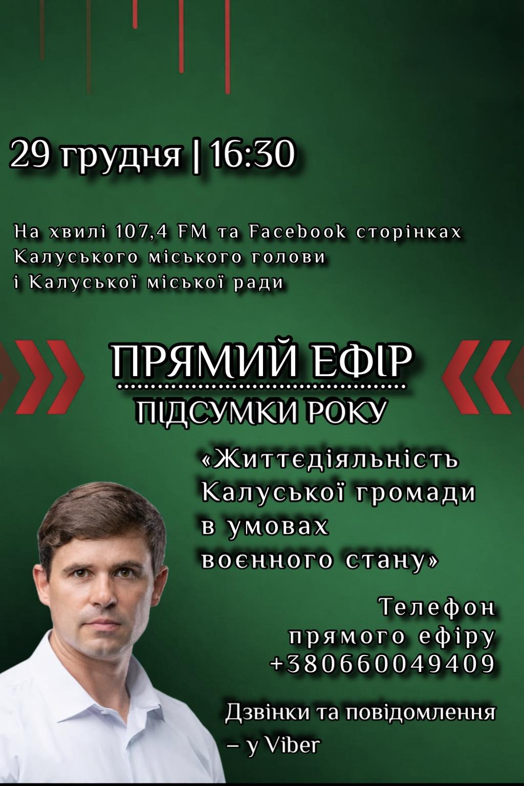 🗓 29 грудня, в понеділок, на хвилі 107,4 FM відбудеться прямий ефір, в рамках якого розповідатиму про життєдіяльність Калуської громади в умовах воєнного стану.